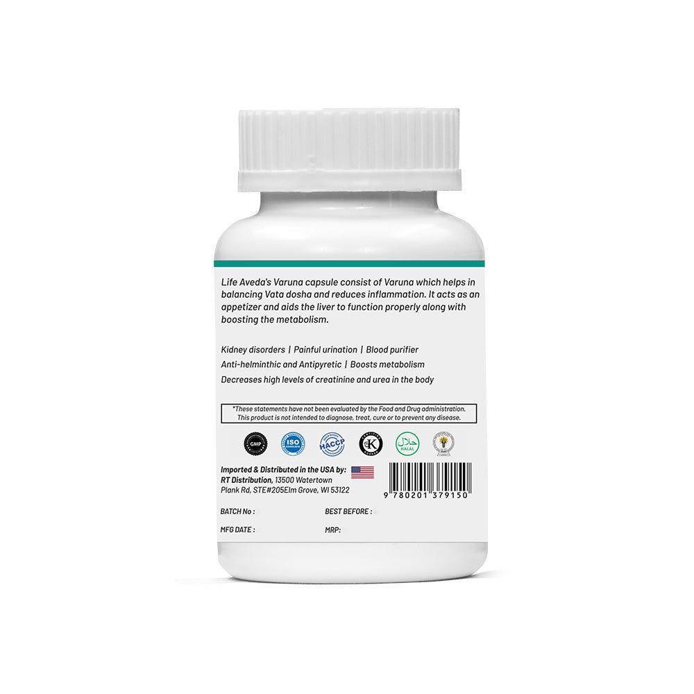 - Life Aveda's Varuna capsules also help in efficiently flushing out toxins and preventing edema and renal stones by leaving your body revitalized and refreshed.