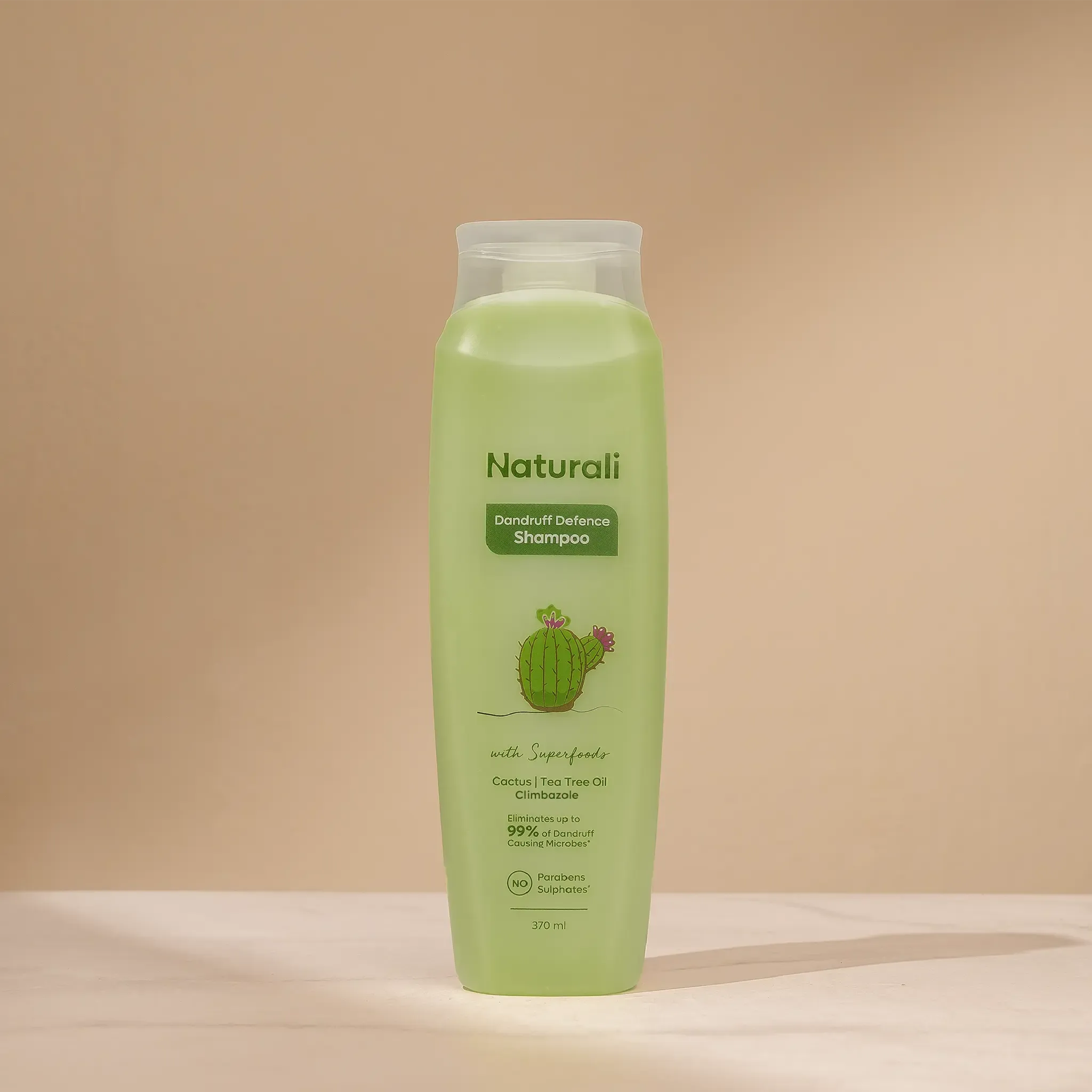 • Soothes Itchy Scalp Powered by superfoods, Cactus extract and Tea Tree Oil, the Naturali Dandruff Defence Shampoo offers relief from an itchy scalp with every use. Both these superfoods work together to soothe an inflamed scalp and reduce itchiness and flakiness on the scalp.