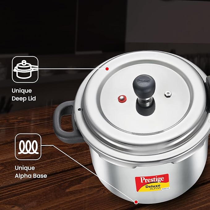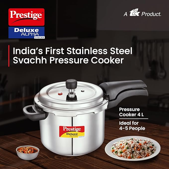 Prestige 4 Litres Svachh Deluxe Alpha Induction Base Outer Lid Stainless Steel Pressure Cooker