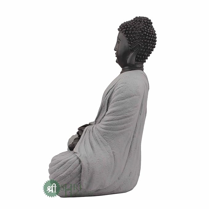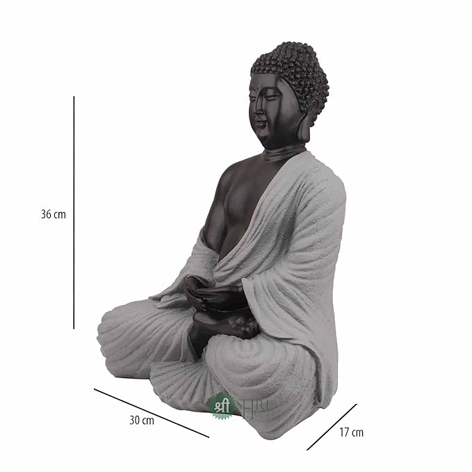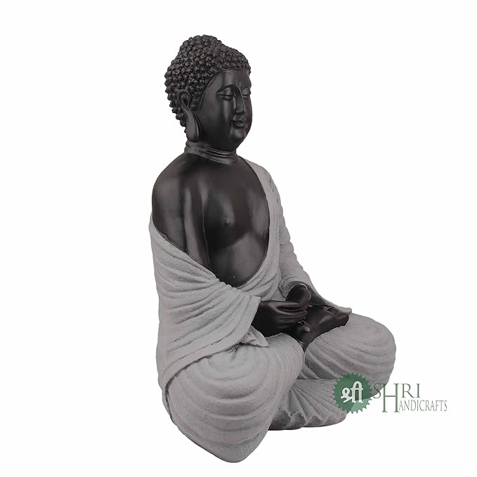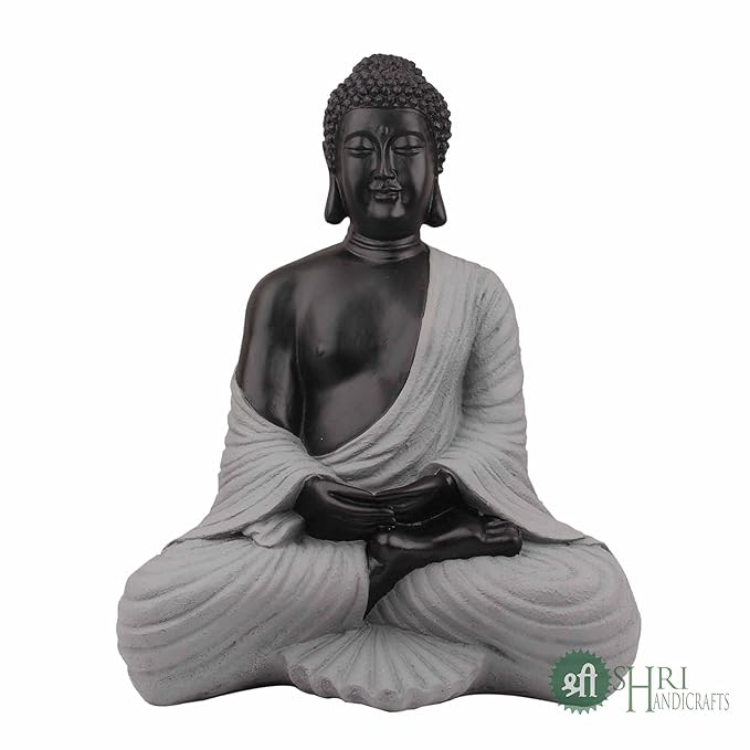 Indicast Polyresin Buddha Idol for Home Decoration | Black and Off White