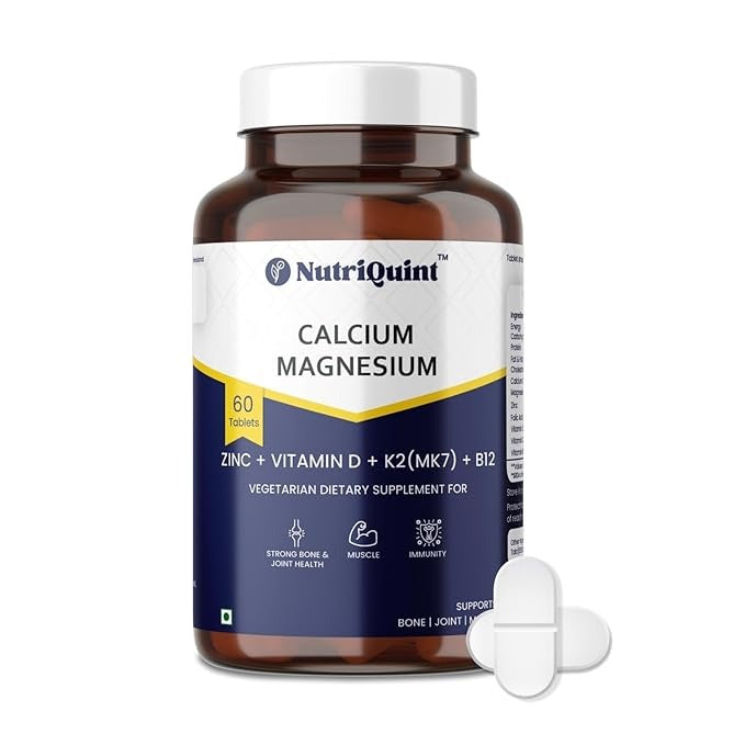 NutriQuint Calcium with Magnesium Zinc Vitamin D K2 & B12 for Women & Men - 60 Tab