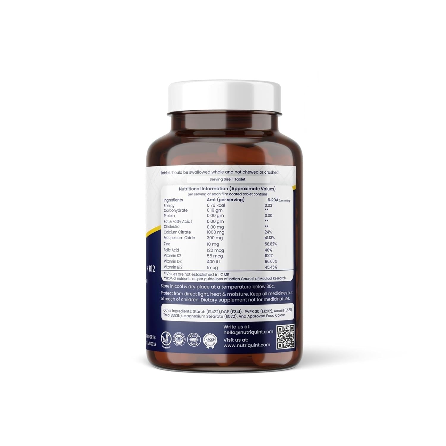 - Adults take one NutriQuint Calcium with Vitamin D3 tablet 1 time daily with water and a meal