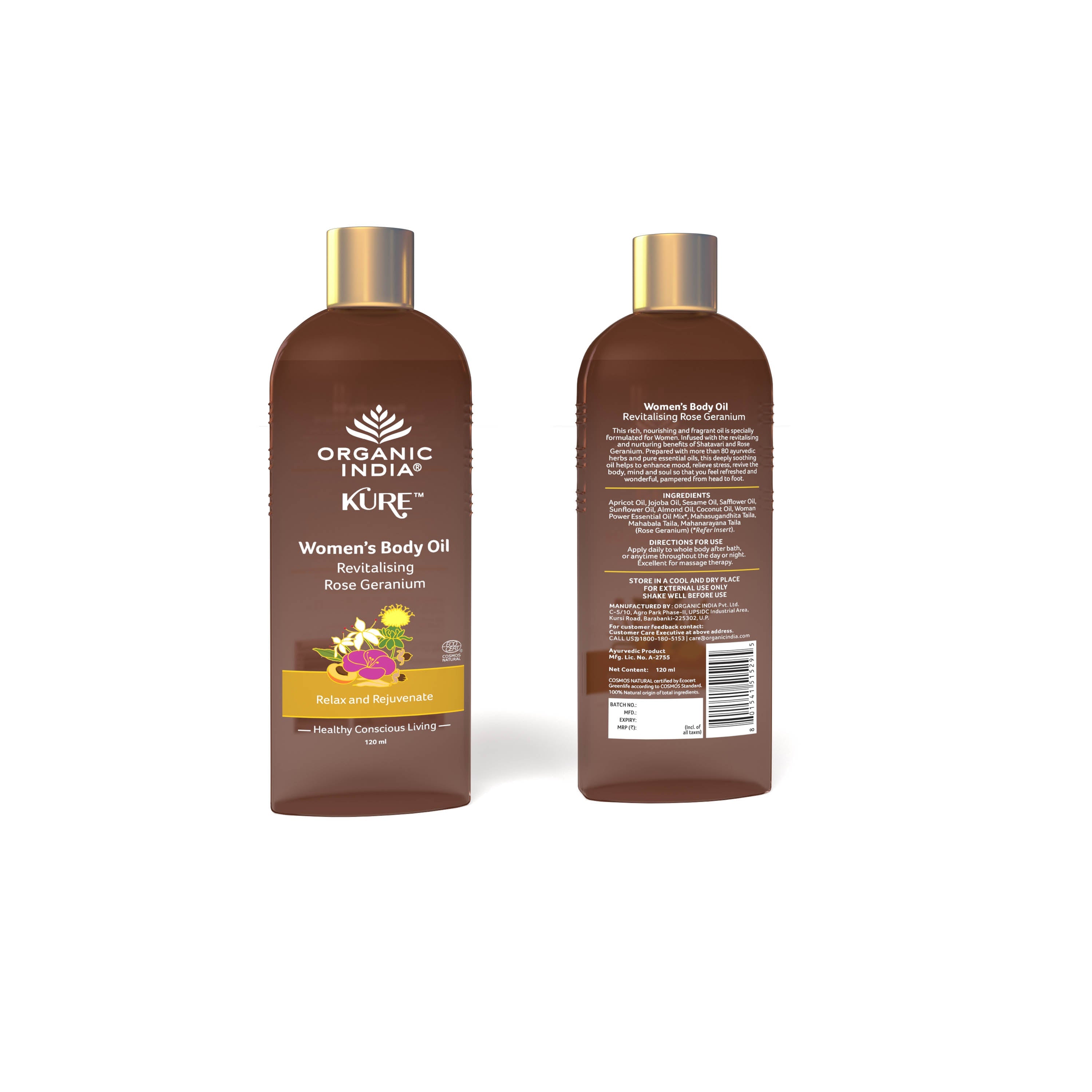 Organic India Women's Body Oil Rose Geranium - 120 ml