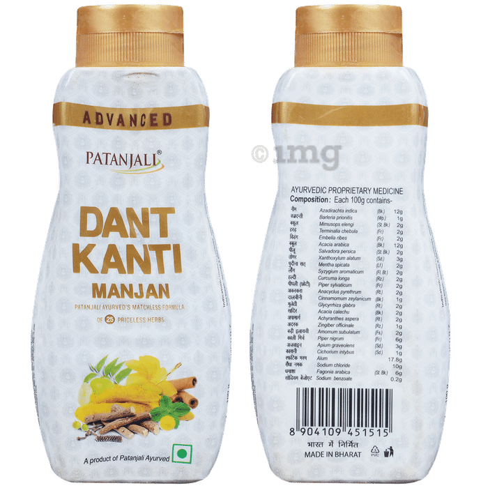 • It provides a refreshing smell and can help people get rid of bad breath. Packed with the goodness of nature, it contains akarkara and babul which protect the gums; neem, timbaru, turmeric and cloves which help to remove and offer protection from bacteria; pudina and pipli refresh the gums; peelu and maju phal make gums stronger.
