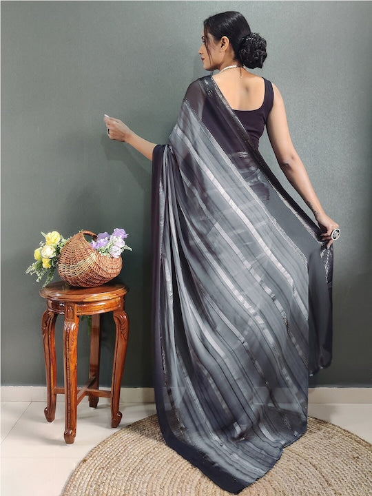 Satrani Striped Zari Poly Georgette Saree