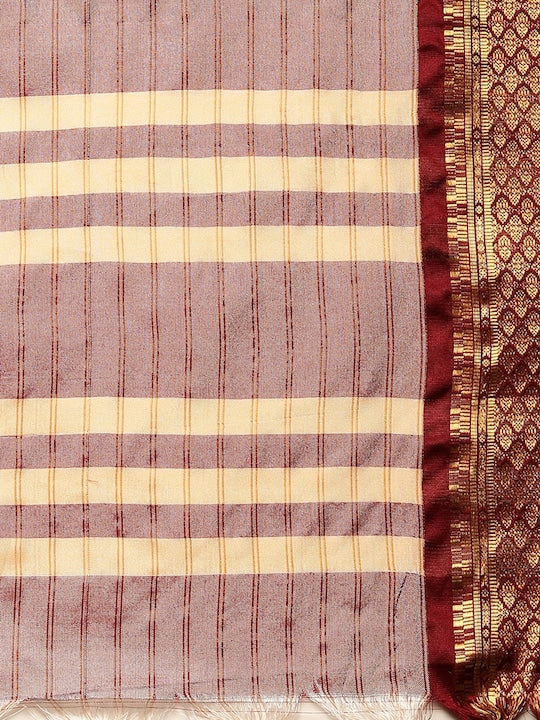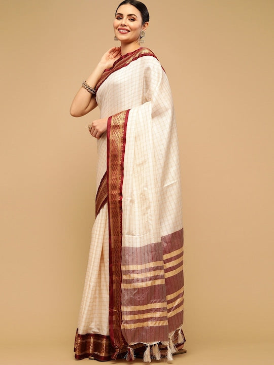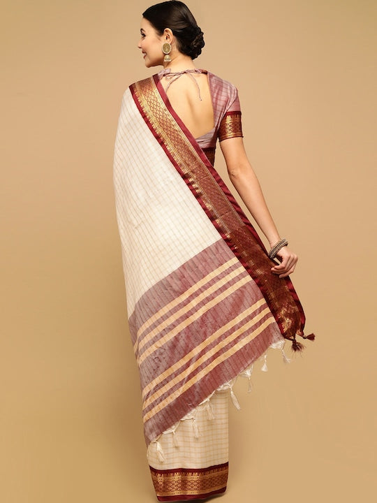 Satrani Women Off White & Maroon Woven Design Zari Saree