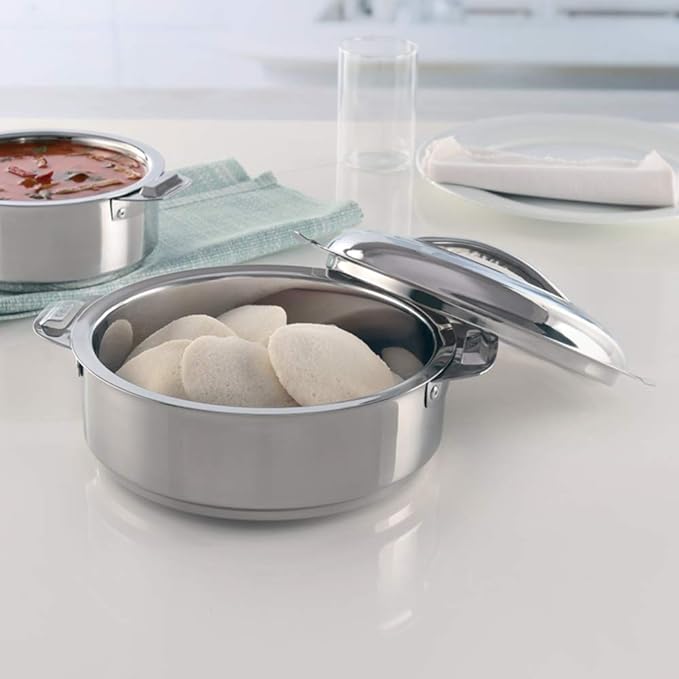 Borosil Stainless Steel Solid Idly Server | 5 Litres | Silver