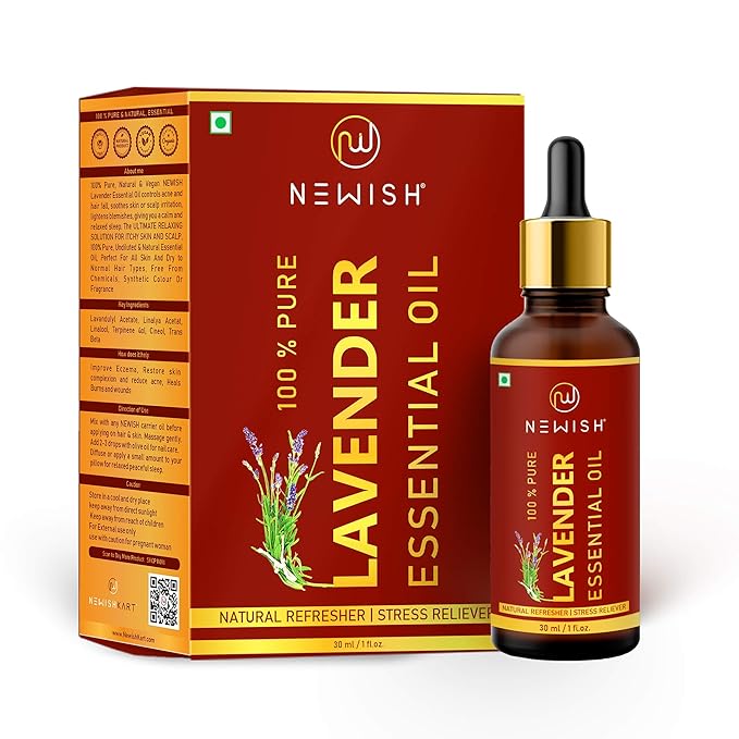 • Newish Lavender essential oil is well known for promoting hair growth and treating hair problems like itchy scalp. It strengthens hair roots by improving blood circulation. It adds shine to your hair making it luminous and lucent. It conditions your nails, prevents painful hangnails and help get control of nail fungus. Also known as lavender oil for skin, lavender oil for diffuser, diffuser oil for home fragrance, oil diffuser for home fragrance.