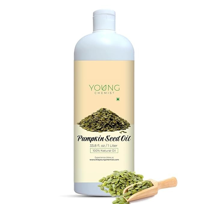 - Young Chemist’s Pumpkin seed oil can also help to control hair fall, dryness, and itchy scalp, and keep the strands healthy and lustrous.