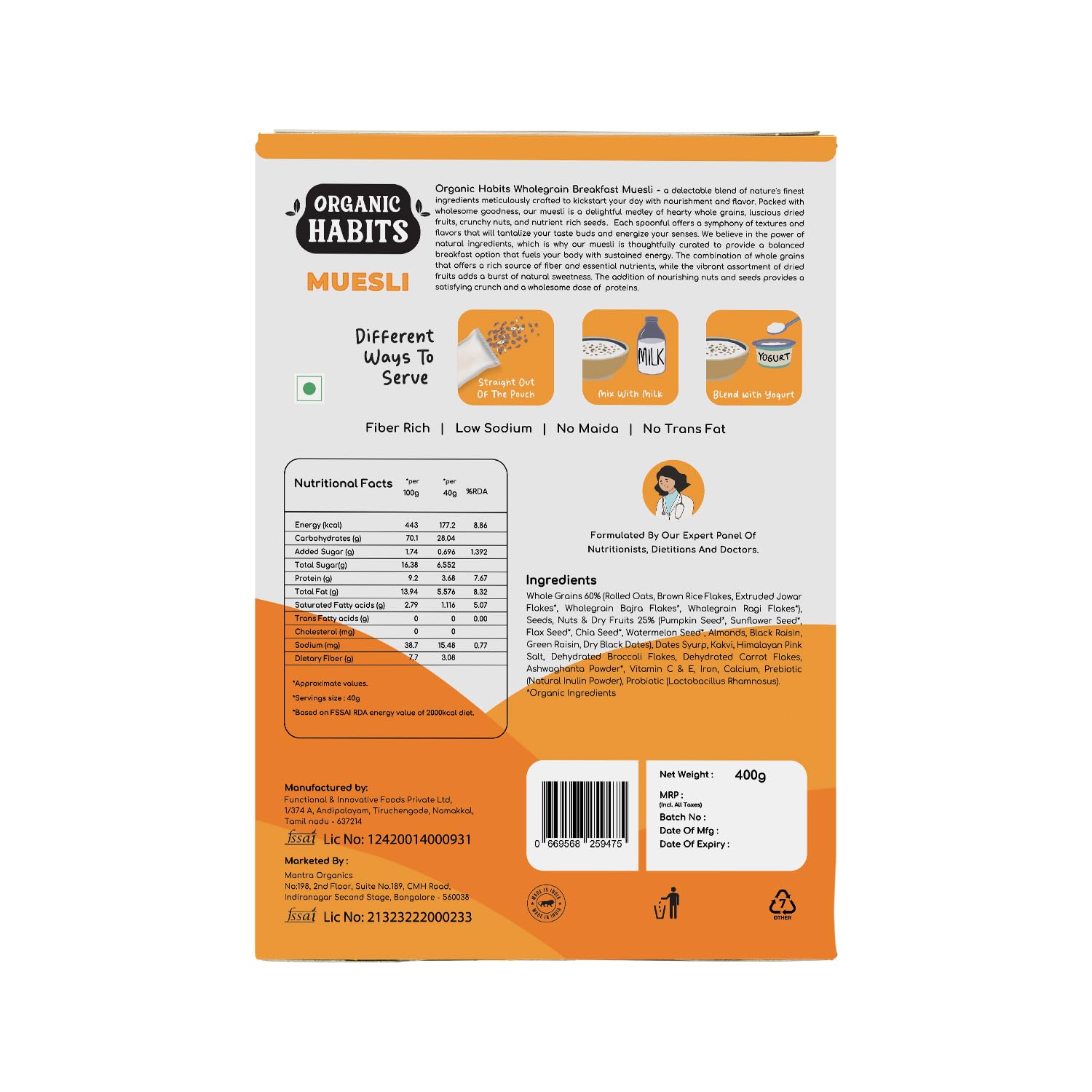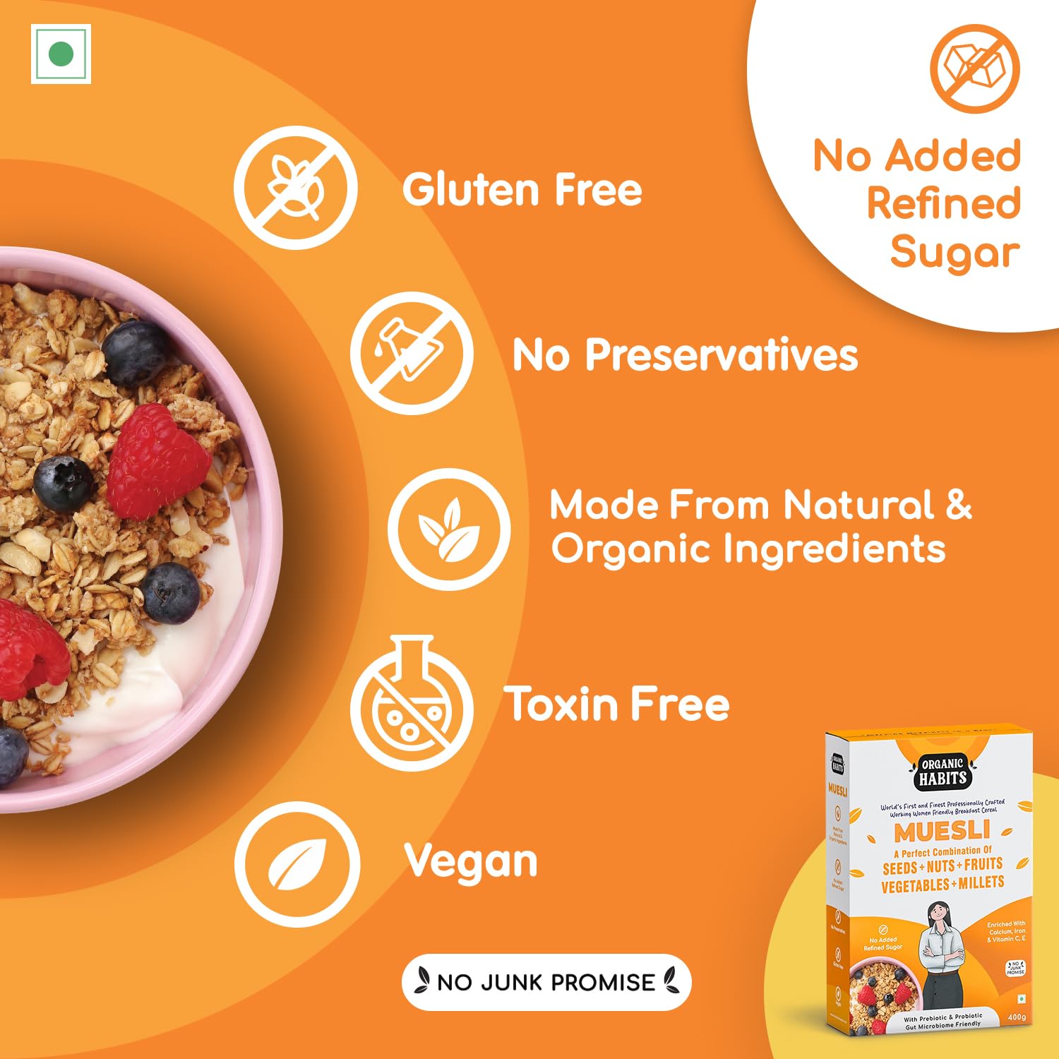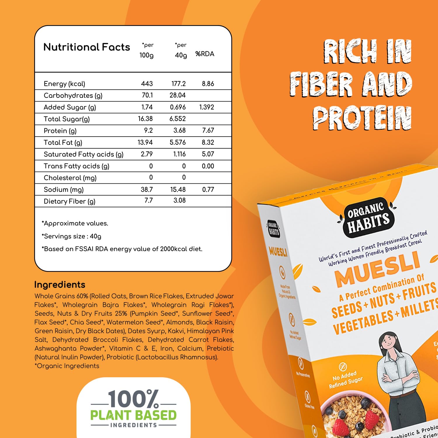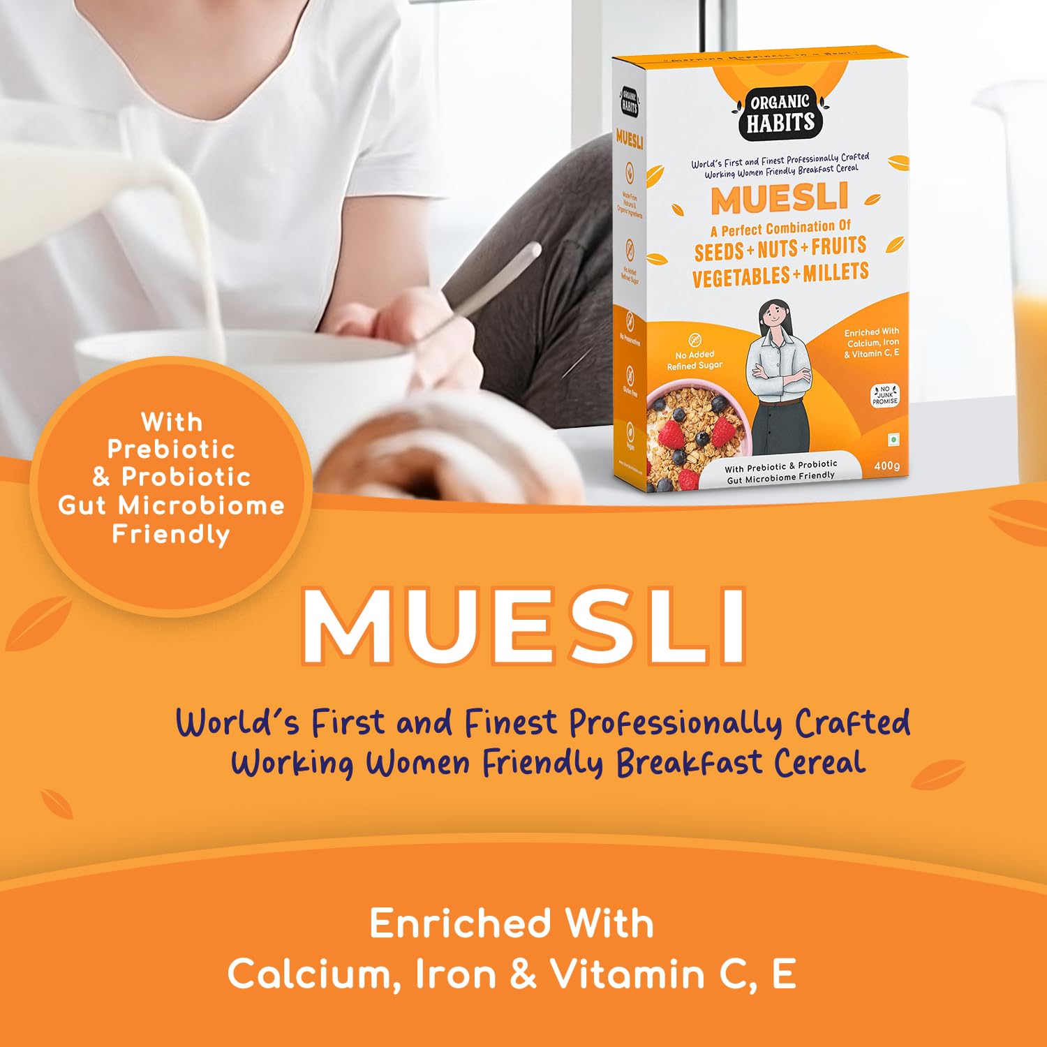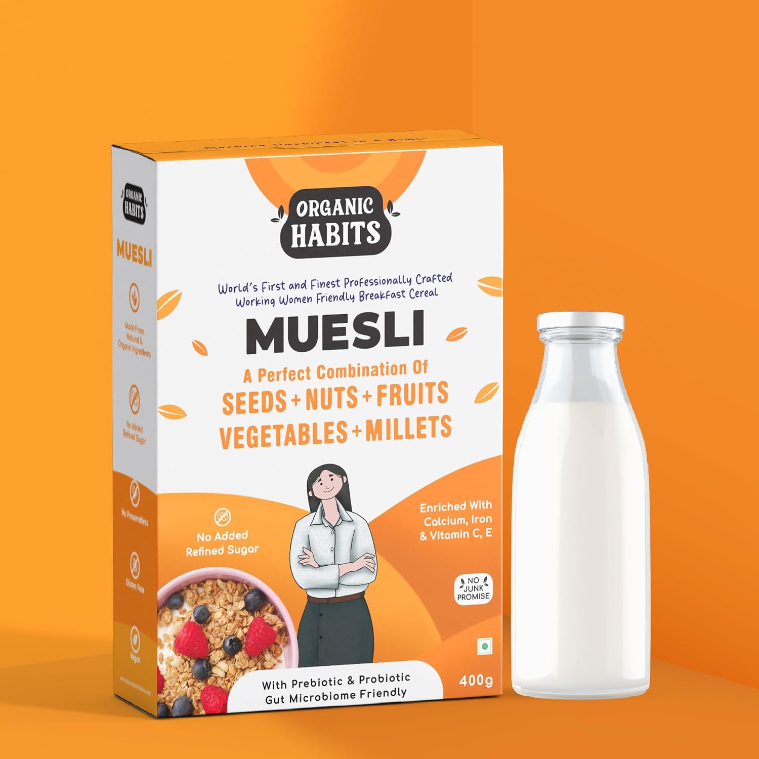 Organic Habits Muesli, Working Women Friendly Breakfast Cereal With Probiotics & Prebiotics - 400 Gms