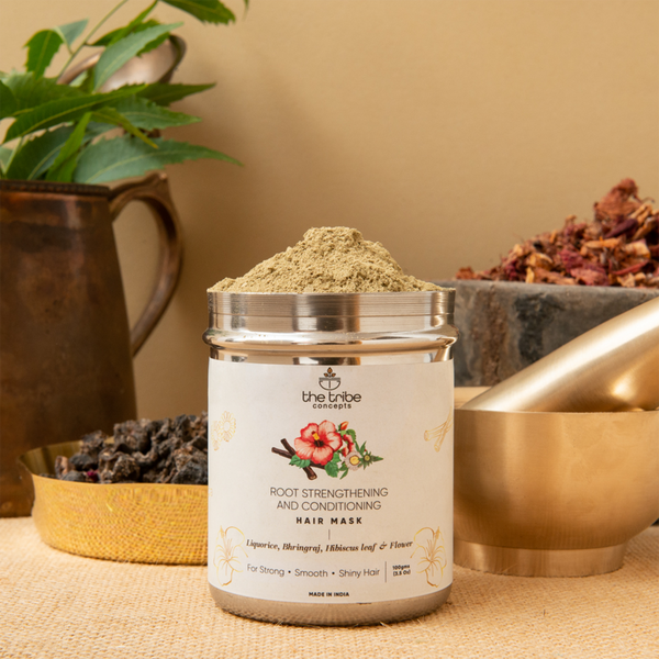 - Our “Root Strengthening and Conditioning Hair Mask” is enriched with raw and promising ingredients like Bhringraj, Hibiscus, Liquorice which helps extensively in making your hair strong from the roots and enhancing the texture and quality of your hair thus promoting hair growth and acts like an excellent hair conditioner.