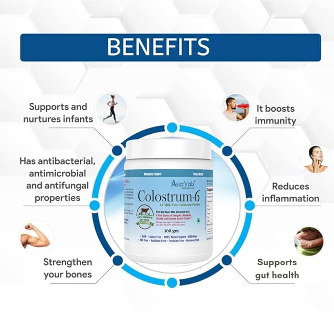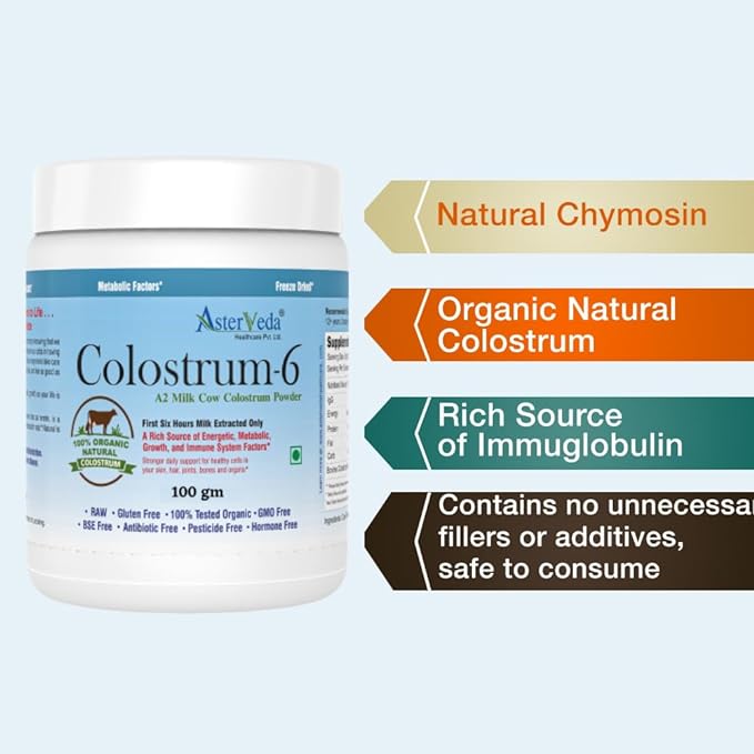 - BIOLOGICAL FACTORS: This health supplement contains natural biological life factors (immune, metabolic, growth) Helps your life by giving stronger support each year it ages. Age beautifully with Asterveda Colostrum6, it helps in eliminating the signs of aging from your skin.