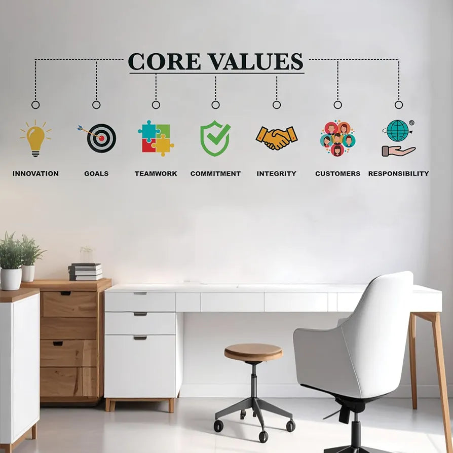 StickMe Core Values Office Corporate Motivational Quotes Wall Sticker Large - 240 x 75 cm
