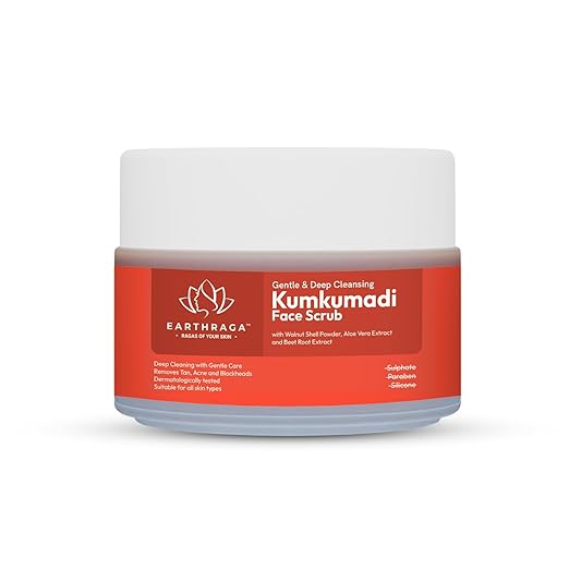 - Gives soft & supple skin. Enjoy a glowing a younger looking skin with Earthraga Kumkumadi face scrub. The face scrub clears away hard grime and dust and leaves your skin softer than before.