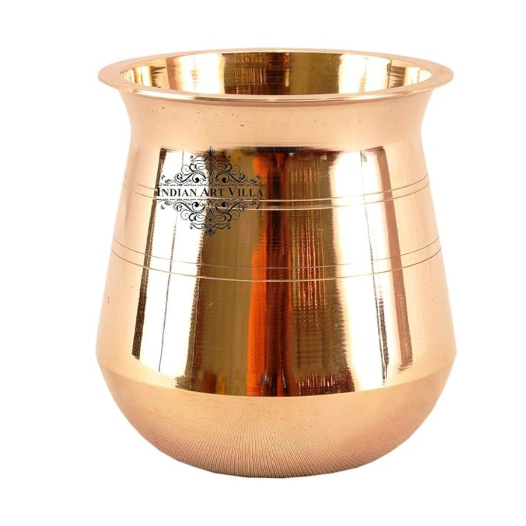- Bronze Small Lining Lota ,Material:Bronze ,Color:Gold ,Weight(Grams):280 ,Volume (ML):300 :Height(inch):3.75" ,Width(inch):3.5"