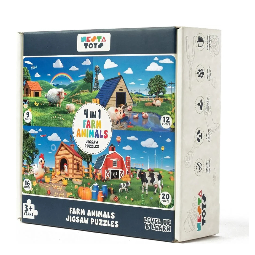 Nesta Toys Floor Puzzle & Game 4 in 1 Jigsaw Puzzle | Farm Animals | Educational Toy, Gifts for Boys & Girls Ages 2, 3, 4, 5, 6 Years | Farm Animal Toys for Kids