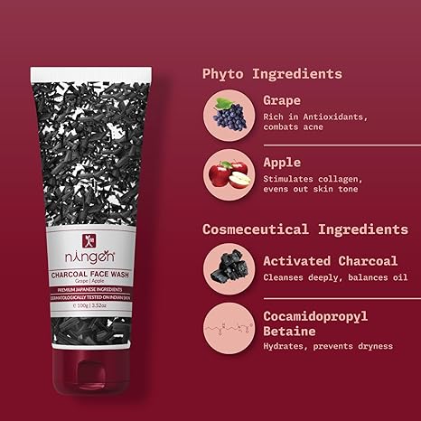 • This face wash contains activated charcoal known for removing the dirt and pollution related damage