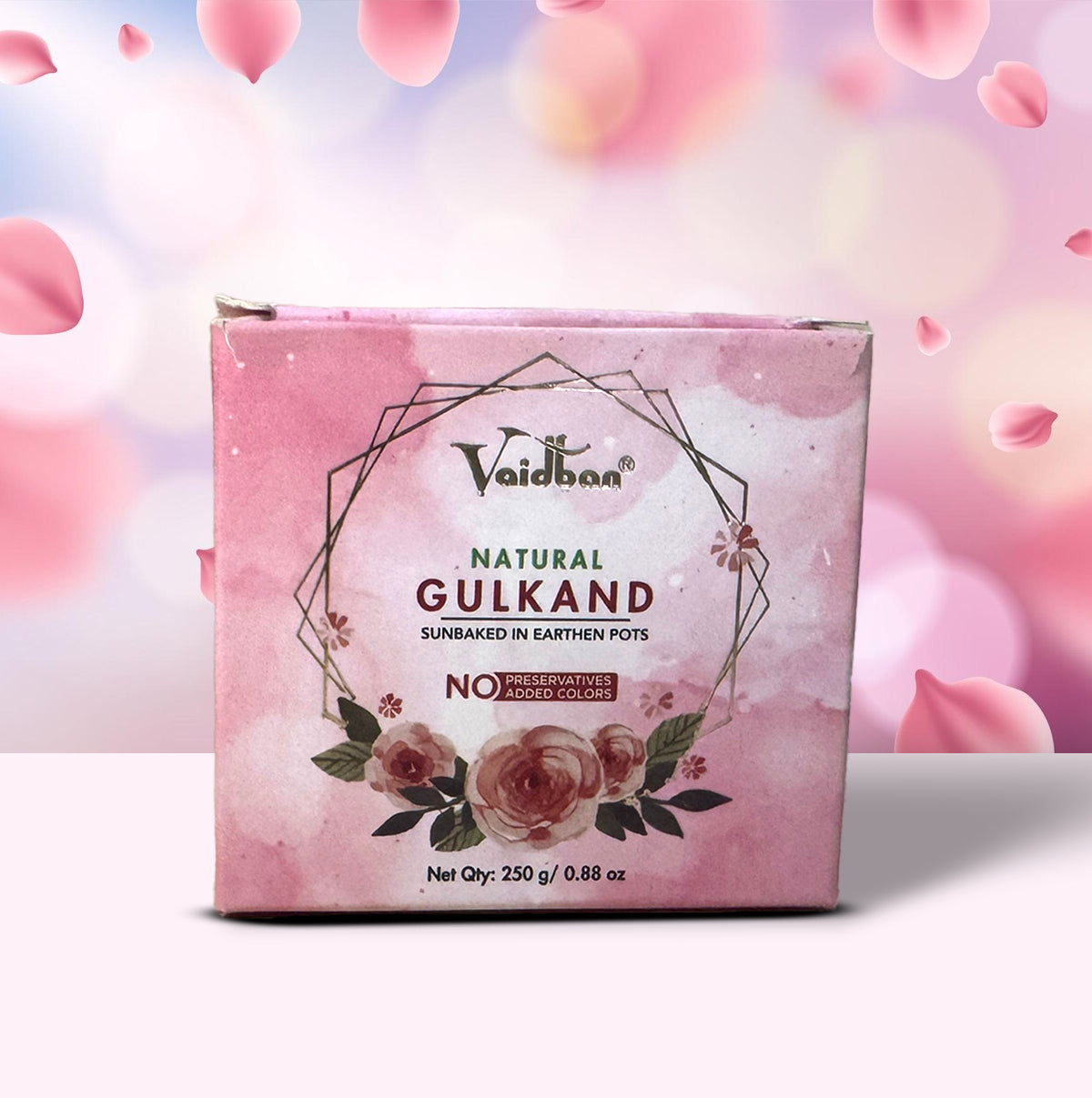 • Vaidban Natural Gulkand is a traditional Ayurvedic preparation made using handpicked rose petals and a time-honored sun-processing method.