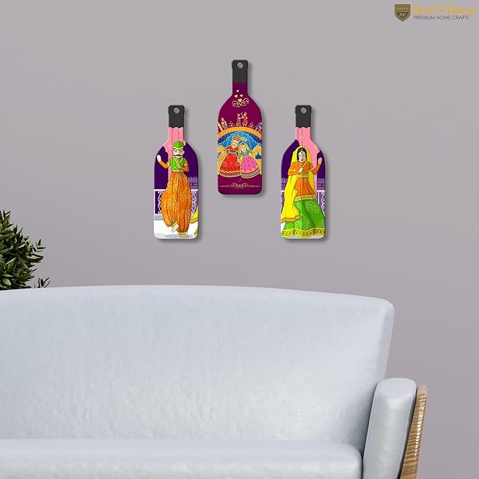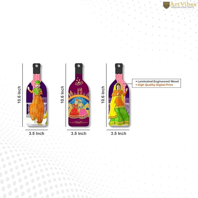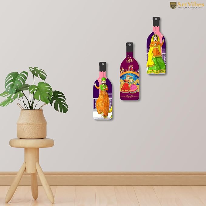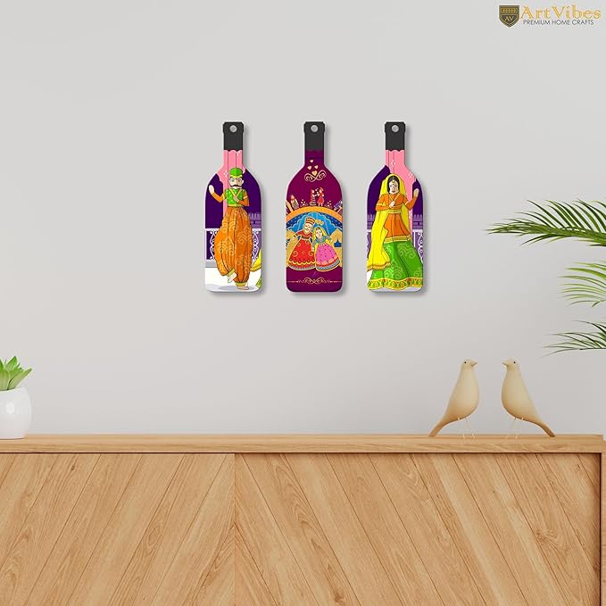 Artvibes Rajasthani Puppet Dance Wooden Wall Hanging for Home Decor | Set of 3