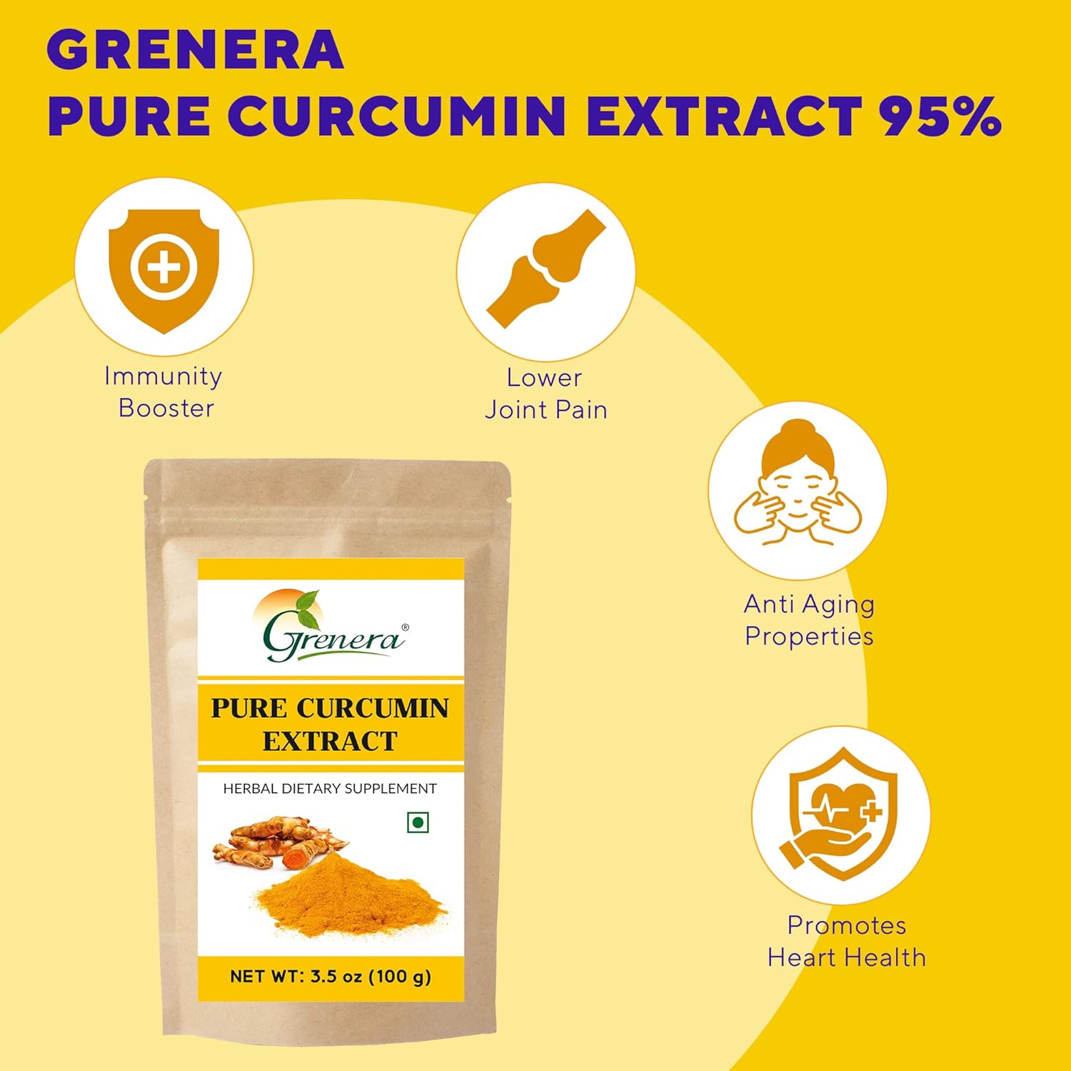 Grenera Pure Curcumin Extract Powder - 100 gms