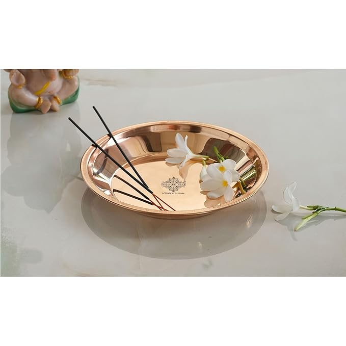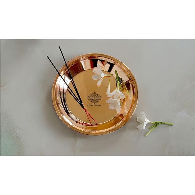 Indian Art Villa Copper Pooja Thali Plate - 100 gms