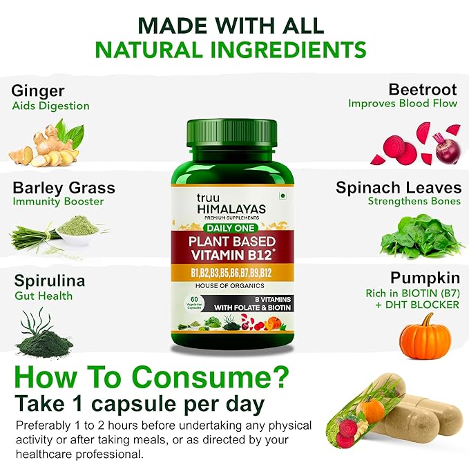 - ULTRACHARGE YOUR ENERGY: truu Himalayas Organic B12+ is your plant-based energy booster! Packed with Vitamin B12 and the complete B-complex, keeping men and women active all day long in just 1 Capsule.