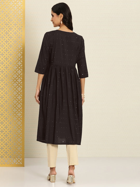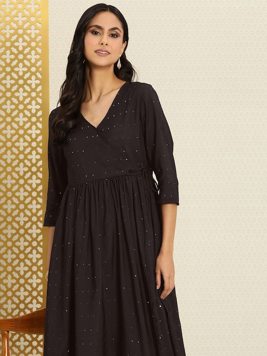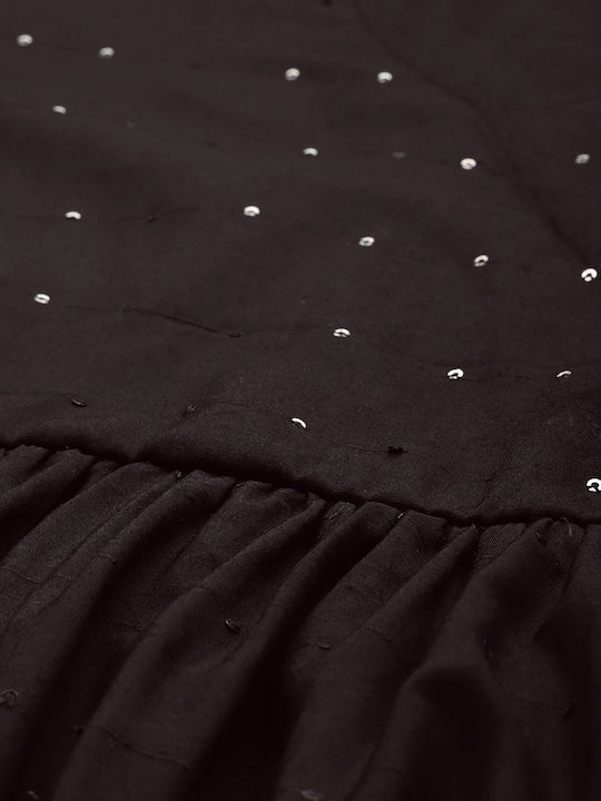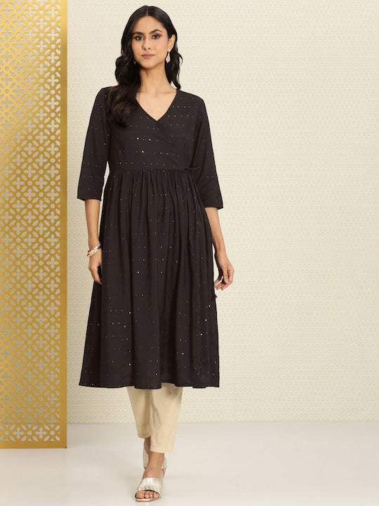 House of Pataudi Embellished Sequinned Rozana Angrakha Kurta With Tie-ups Detail