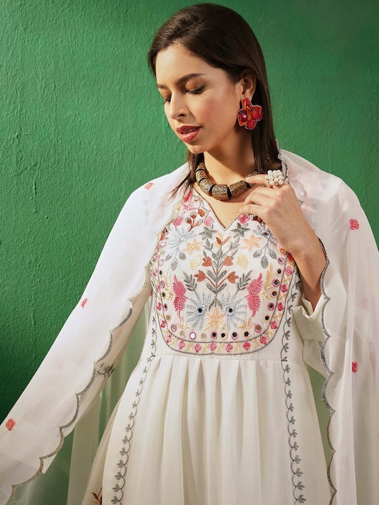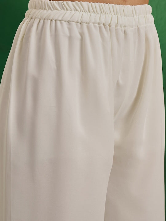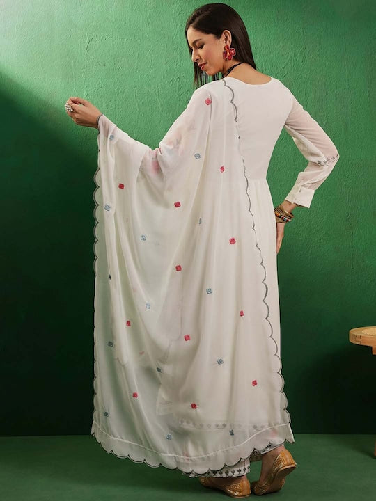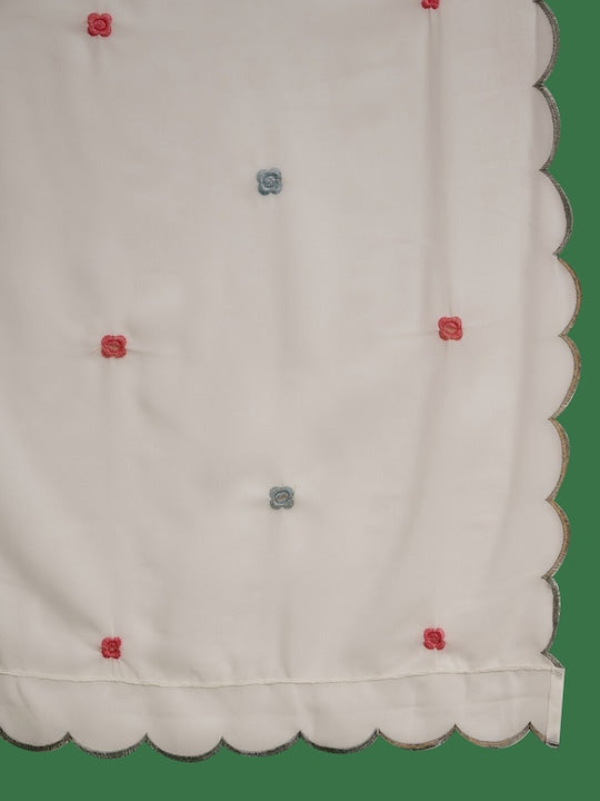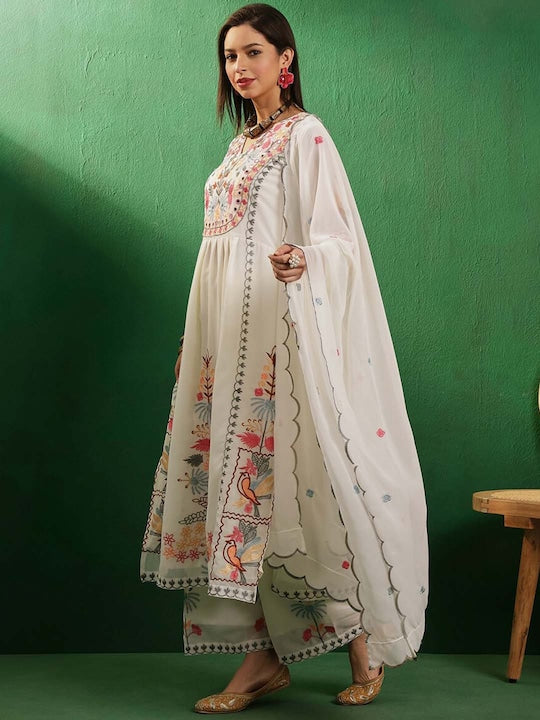 • Off-White Embroidered Kurta Set with Trousers and Dupatta