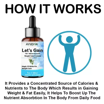 • Let's Gain Weight Gain Liquid Drop is designed to increase weight naturally.