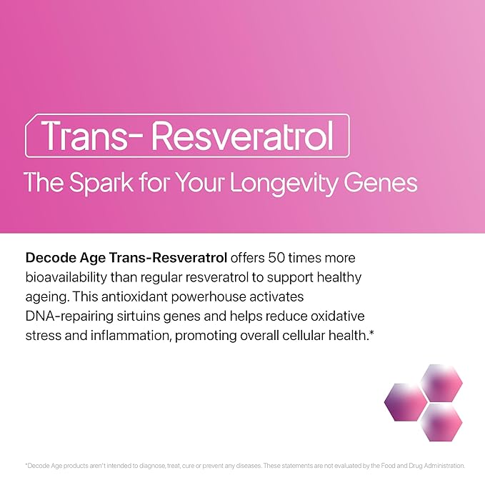 Decode Age 99.5% Pure Trans Resveratrol 500mg Capsules - 60 Caps