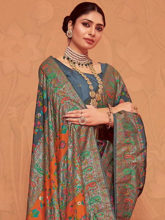 • Floral printed saree with printed border