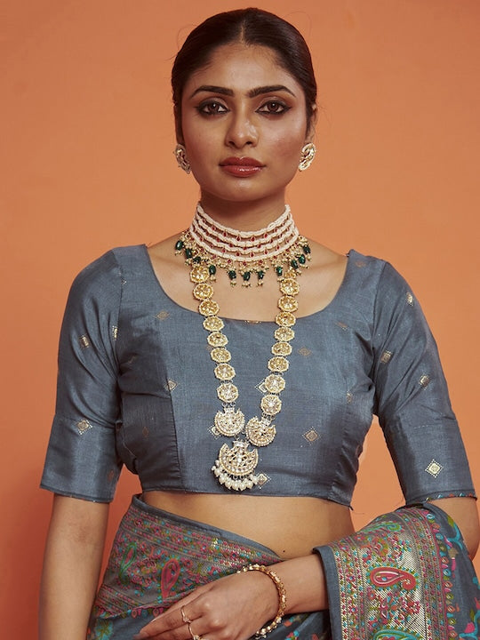 • The saree comes with an unstitched blouse piece. The blouse worn by the model might be for modelling purpose only. Check the image of the blouse piece to understand how the actual blouse piece looks like.