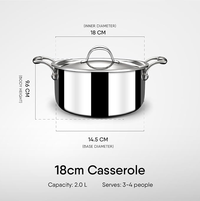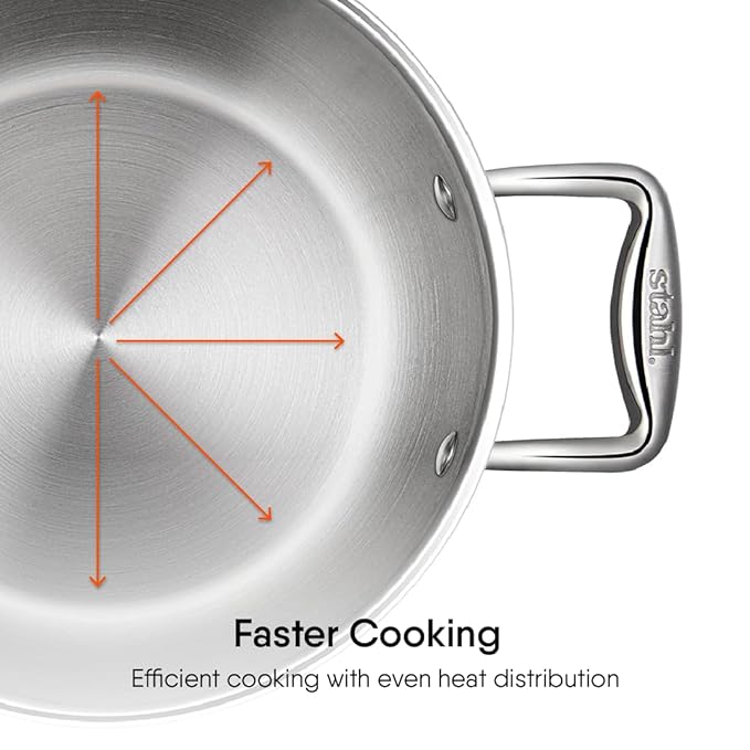 Stahl Artisan Triply Stainless Steel Sauce Pot/ Casserole With Lid | Induction Pot | Briyani Pot/ Handi | 2 L | 18 Cm