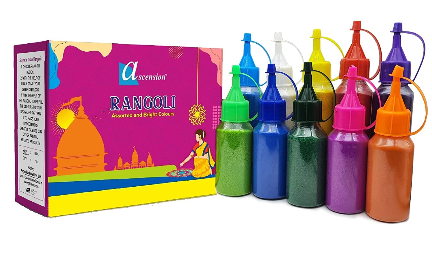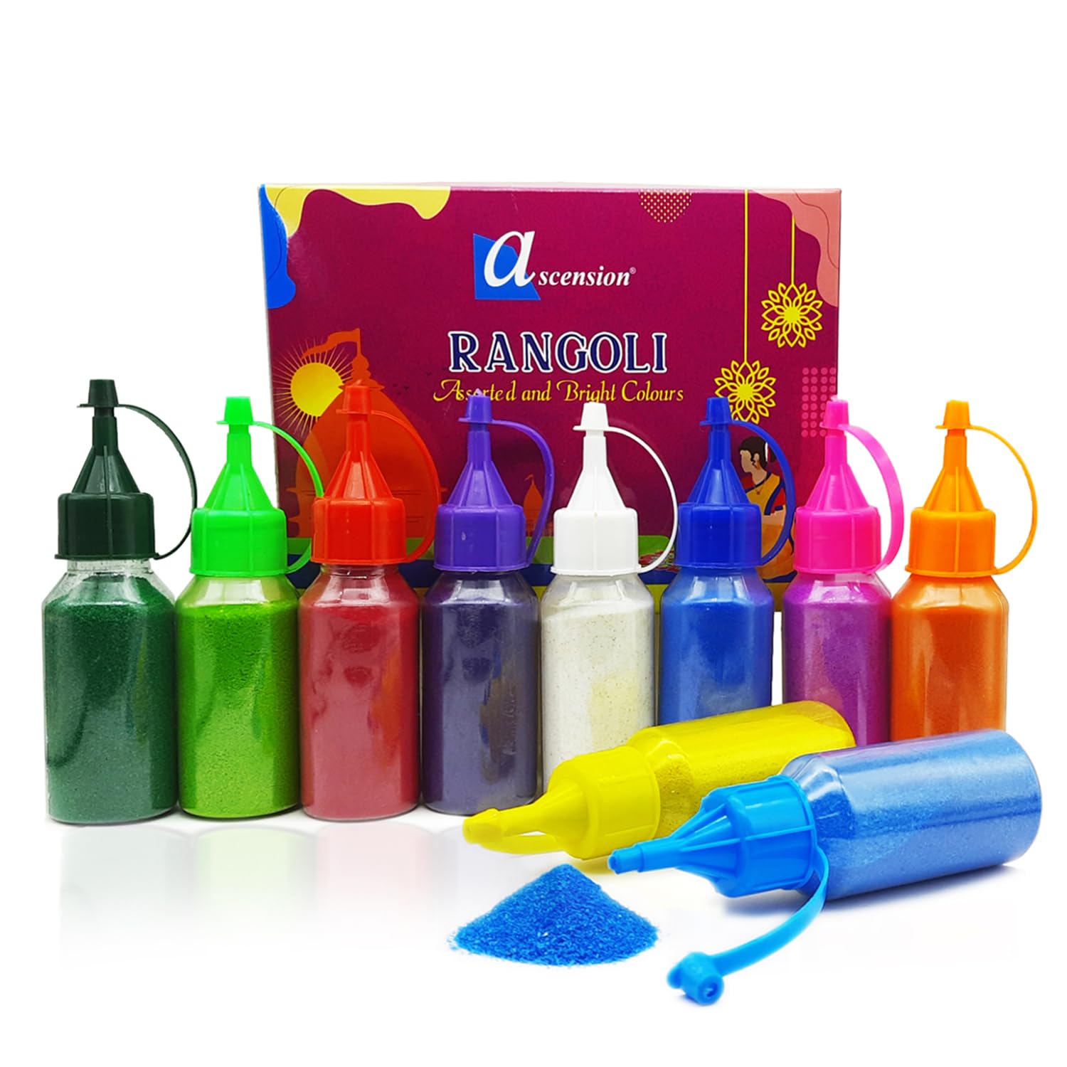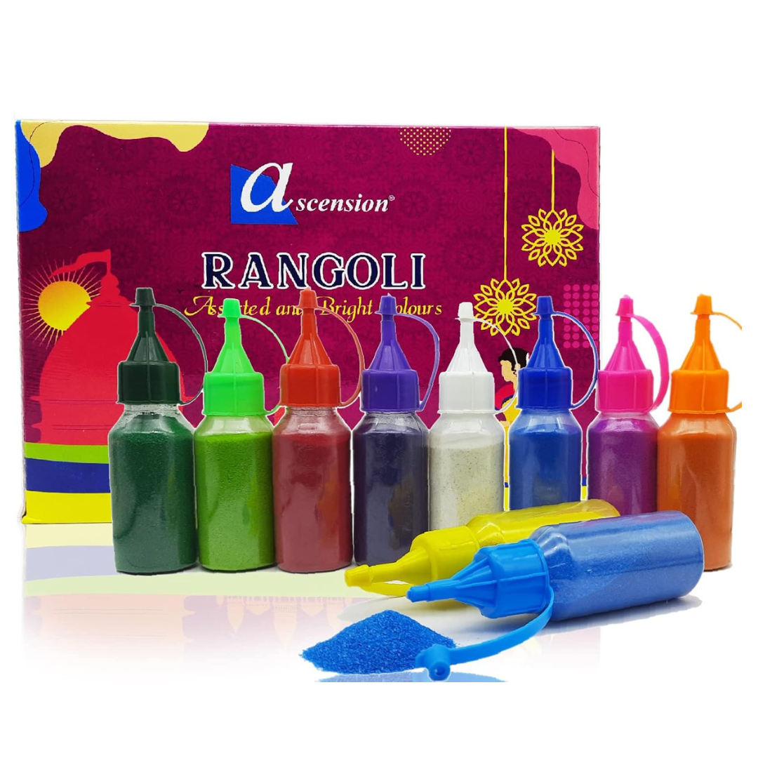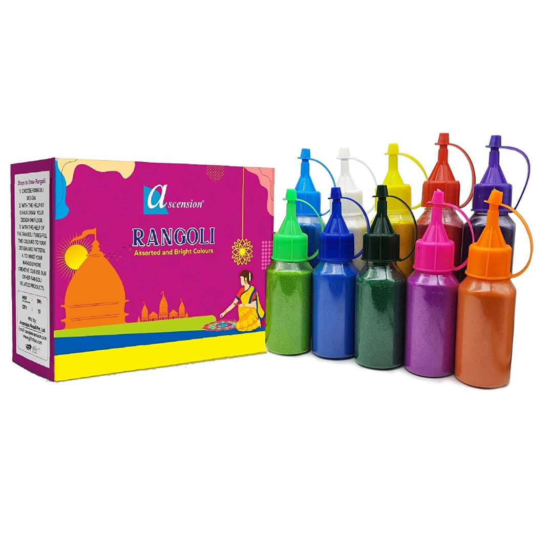 Ascension Design Creativity Diwali Floor Rangoli Art Ceramic Colours 10 Tubes Premium Diwali Rangoli Colors