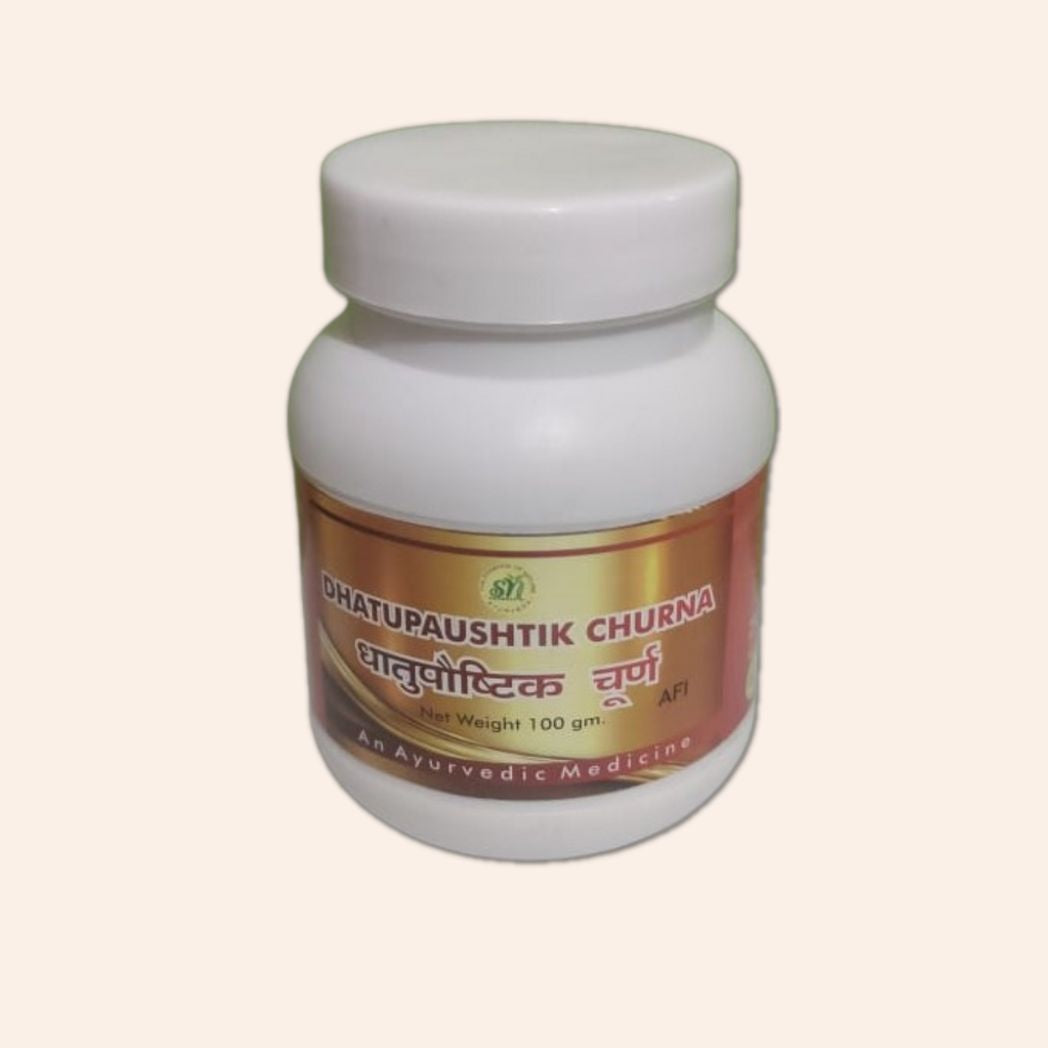 • Dhatu Paushtik Churna is a traditional herbal formulation referenced in Ayurvedic texts, known for its role in supporting overall nourishment and strength.