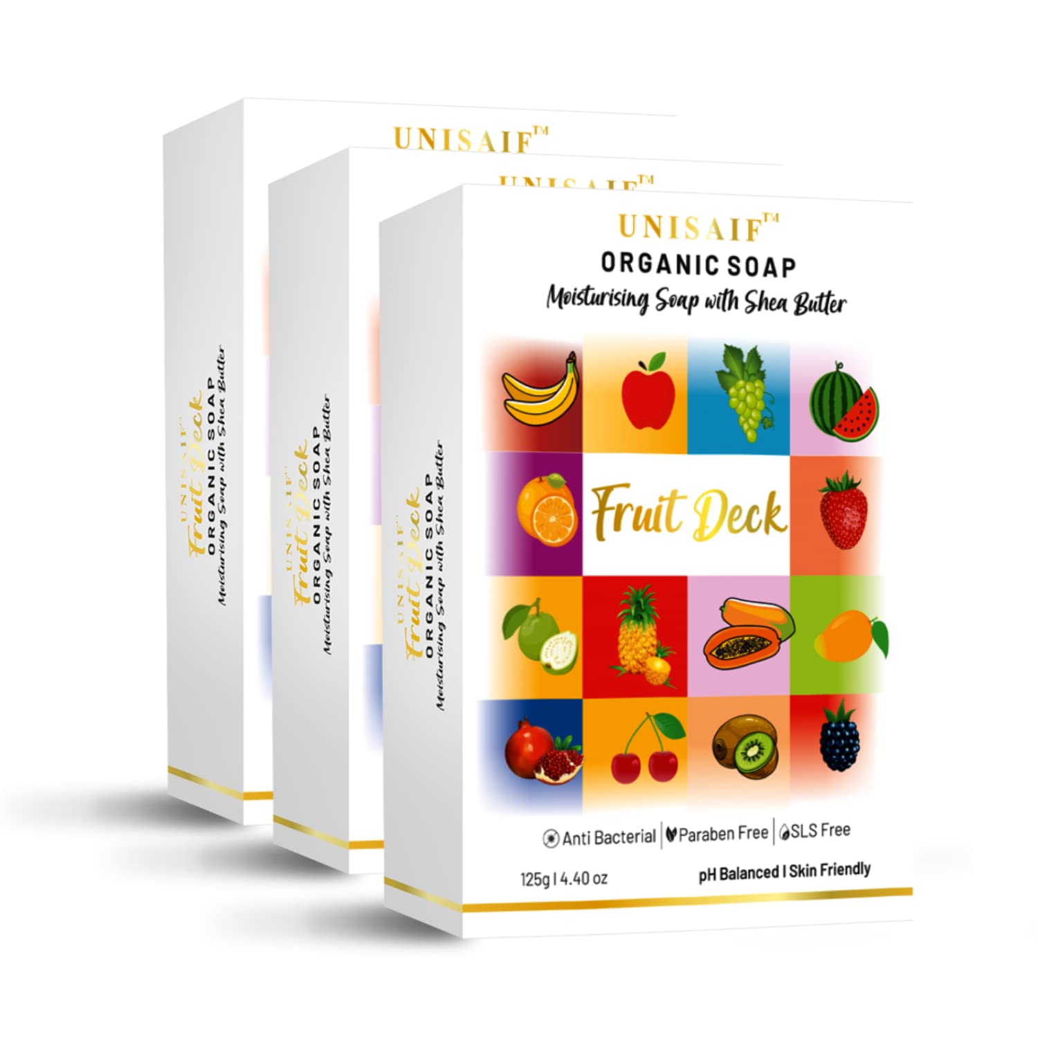 Unisaif Fruit Deck Organic Soap - 125 gms (pack of 3)