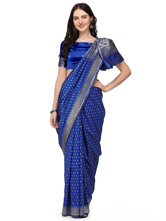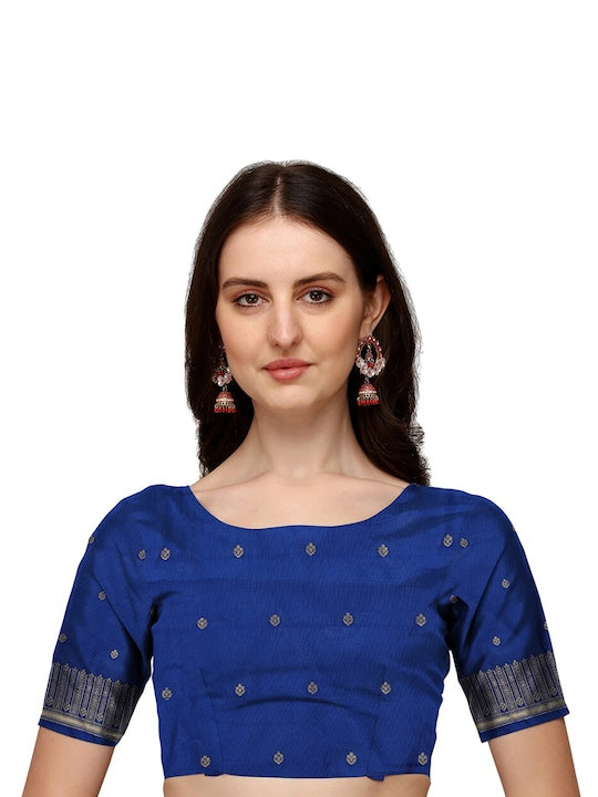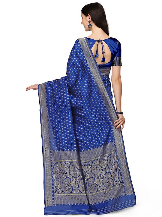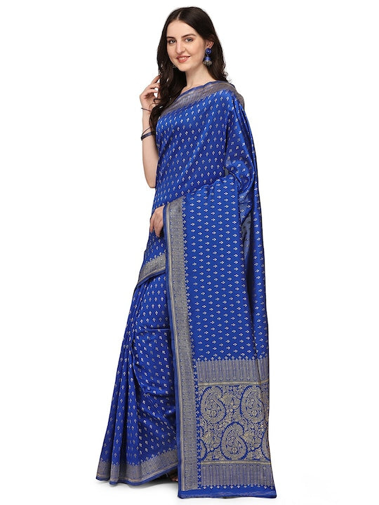 Anjaneya Sarees Blue & Gold-Toned Woven Design Art Silk Banarasi Saree