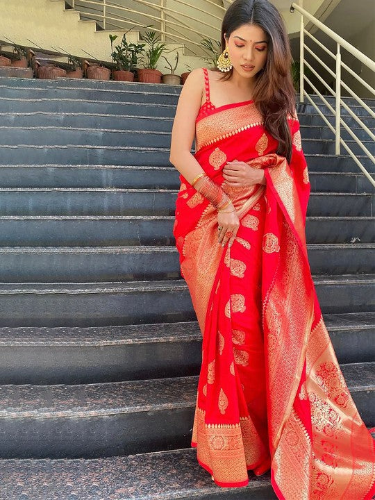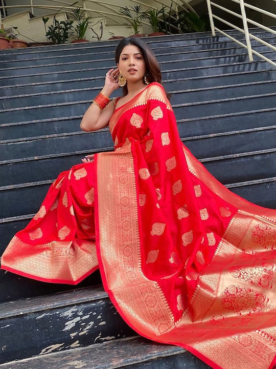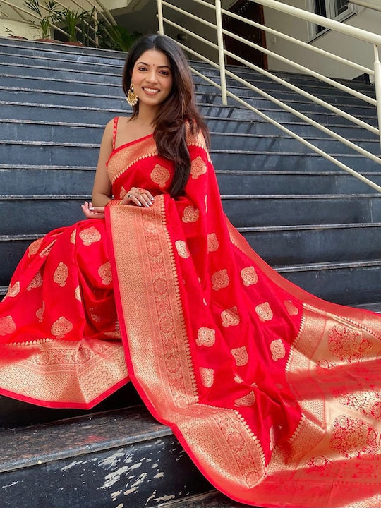 Anjaneya Sarees Ethnic Motifs Woven Design Zari Banarasi Saree