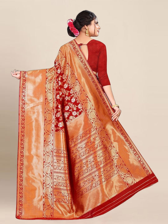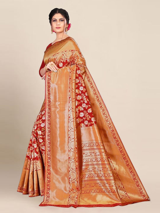 Anjaneya Sarees Floral Woven Design Zari Banarasi Saree