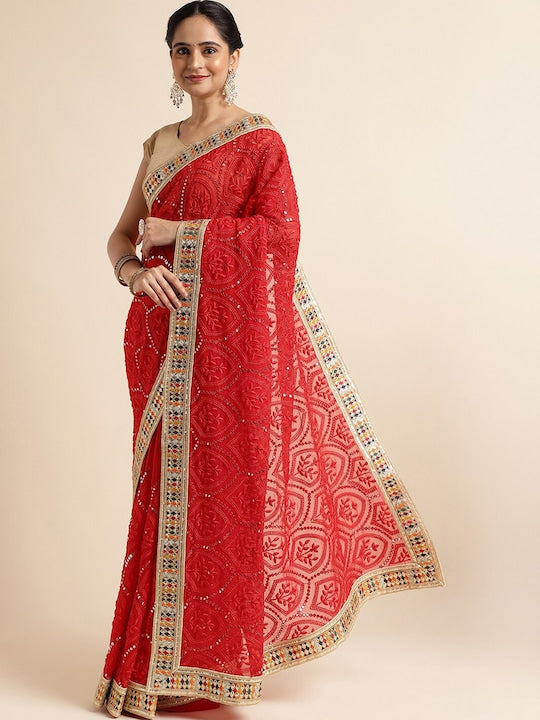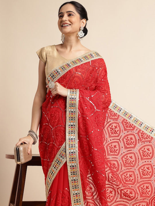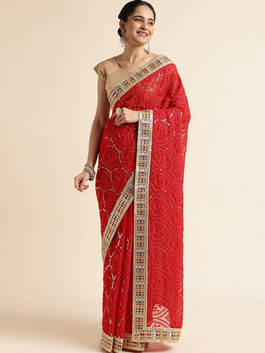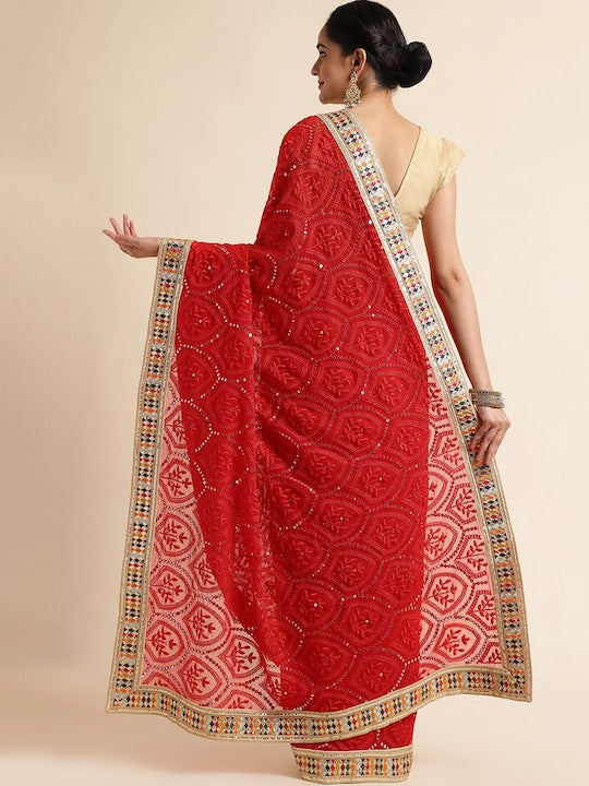 Fabmora Ethnic Motifs Embroidered Pure Georgette Saree