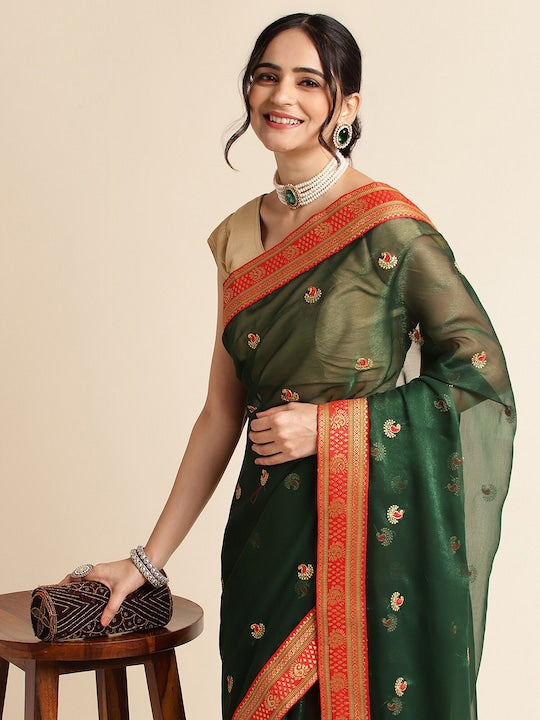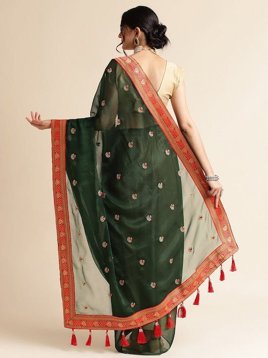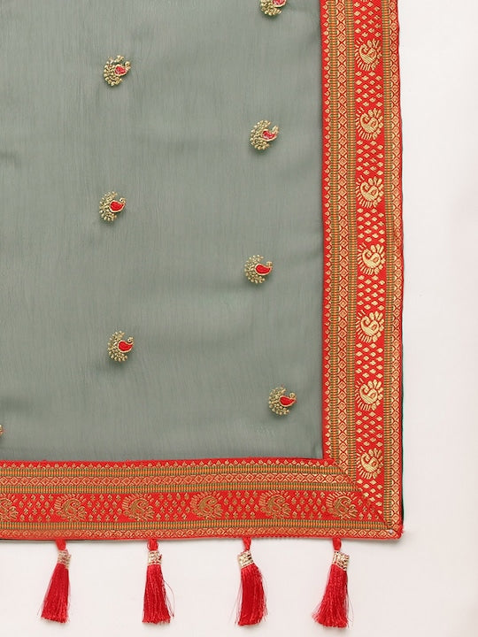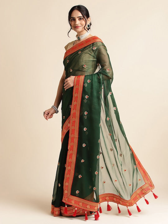 Fabmora Ethnic Motifs Embroidered Net Saree