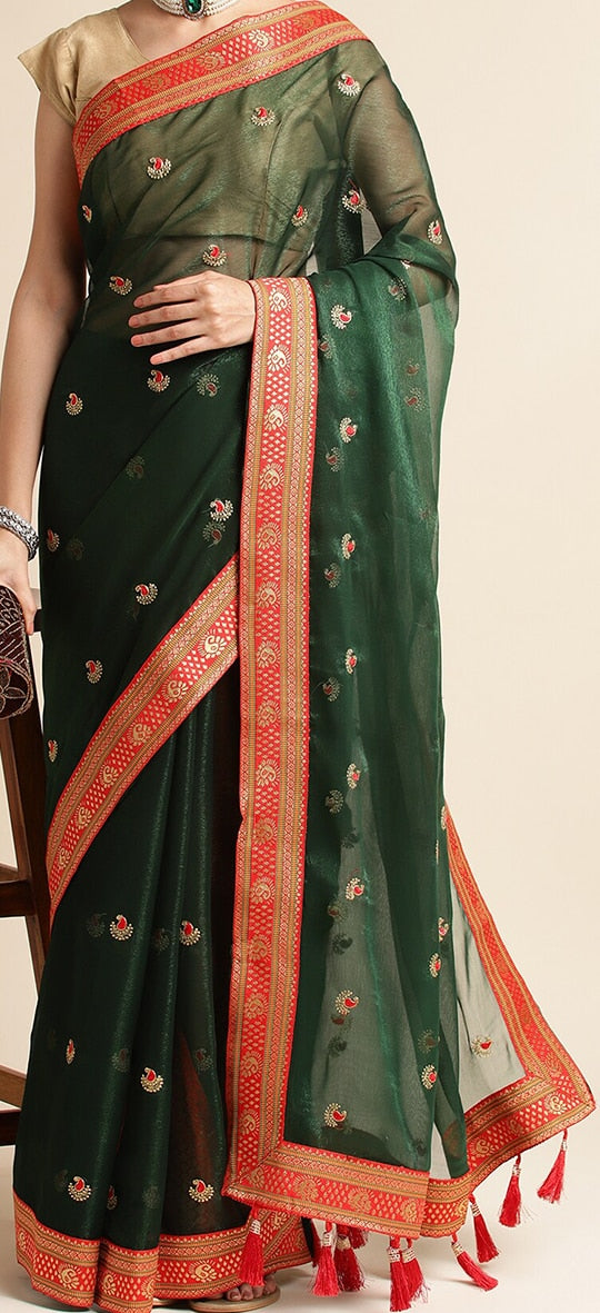 - The blouse worn by the model might be for modelling purpose only. Check the image of the blouse piece to understand how the actual blouse piece looks like.
