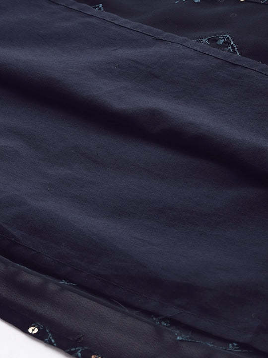 • Navy blue ethnic motifs embroidered & embellished kurta