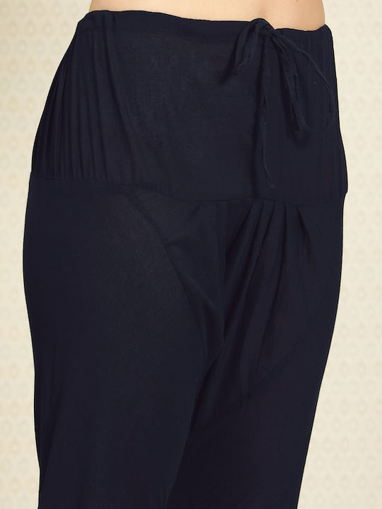 • Navy blue embroidered Kurta and Churidar with dupatta