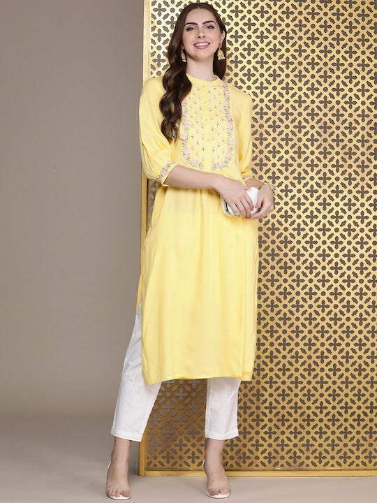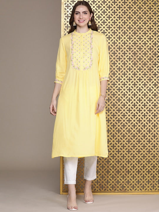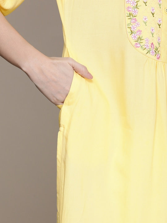 House of Pataudi Jashn Pure Cotton Ethnic Motifs Yoke Design Thread Work Floral Kurta