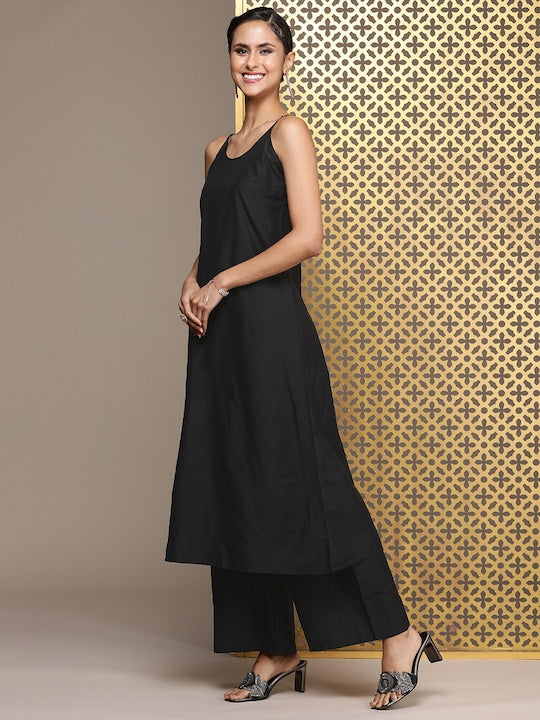 House of Pataudi Solid Sleeveless Regular Jashn Kurta with Palazzos & Jacket