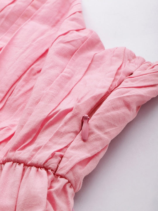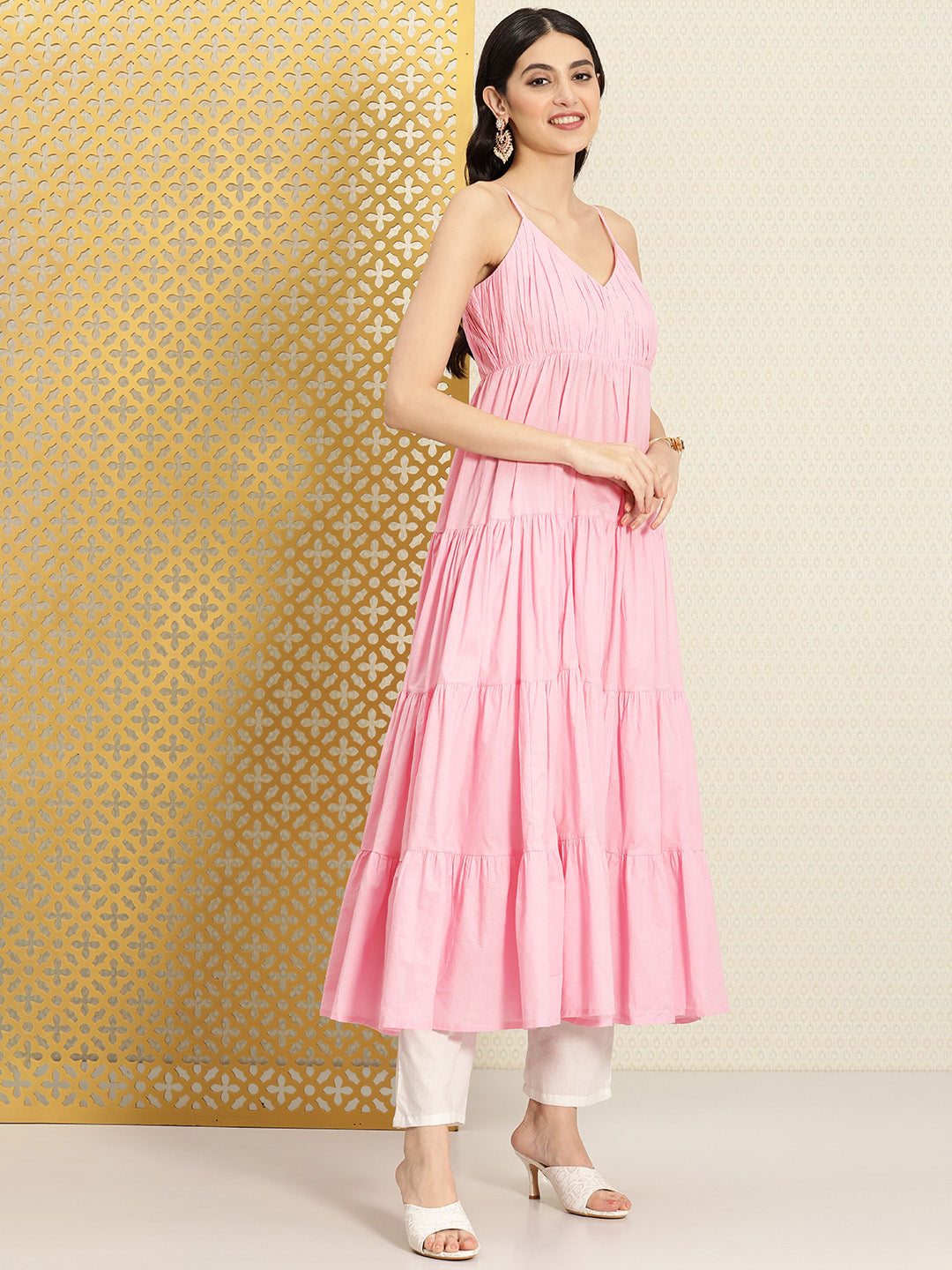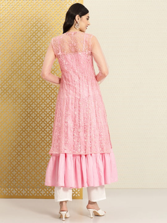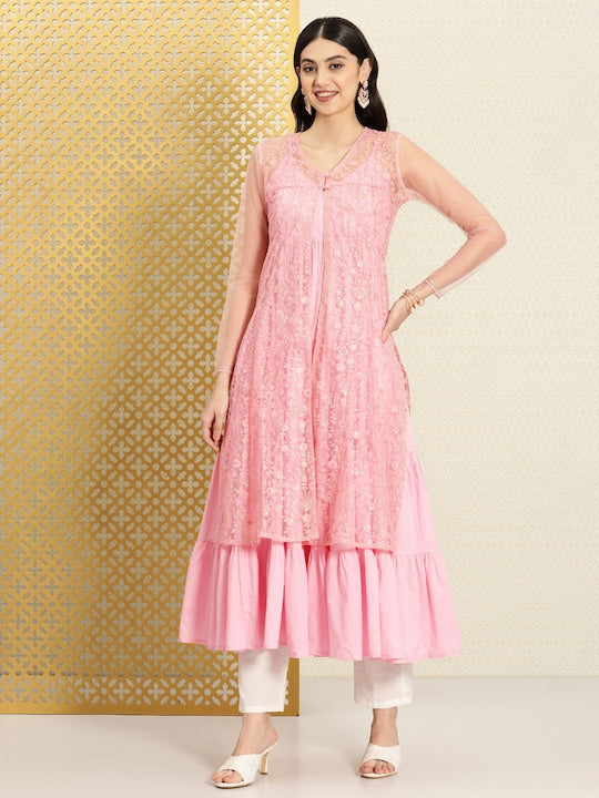 House of Pataudi Women Pure Cotton Pastels Jashn Kurta With Net Over Coat
