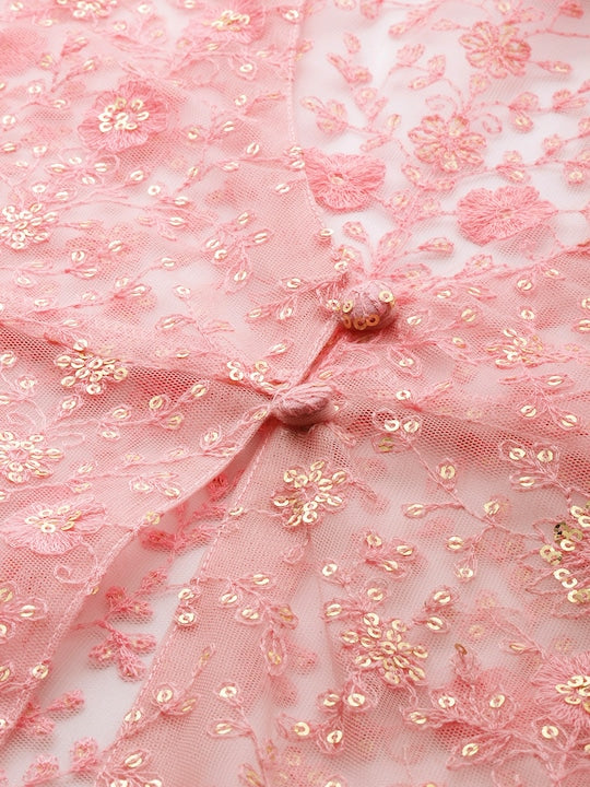 - Add-on: Net sequined floral long sleeves v-neck overcoat