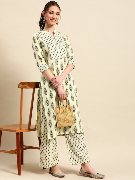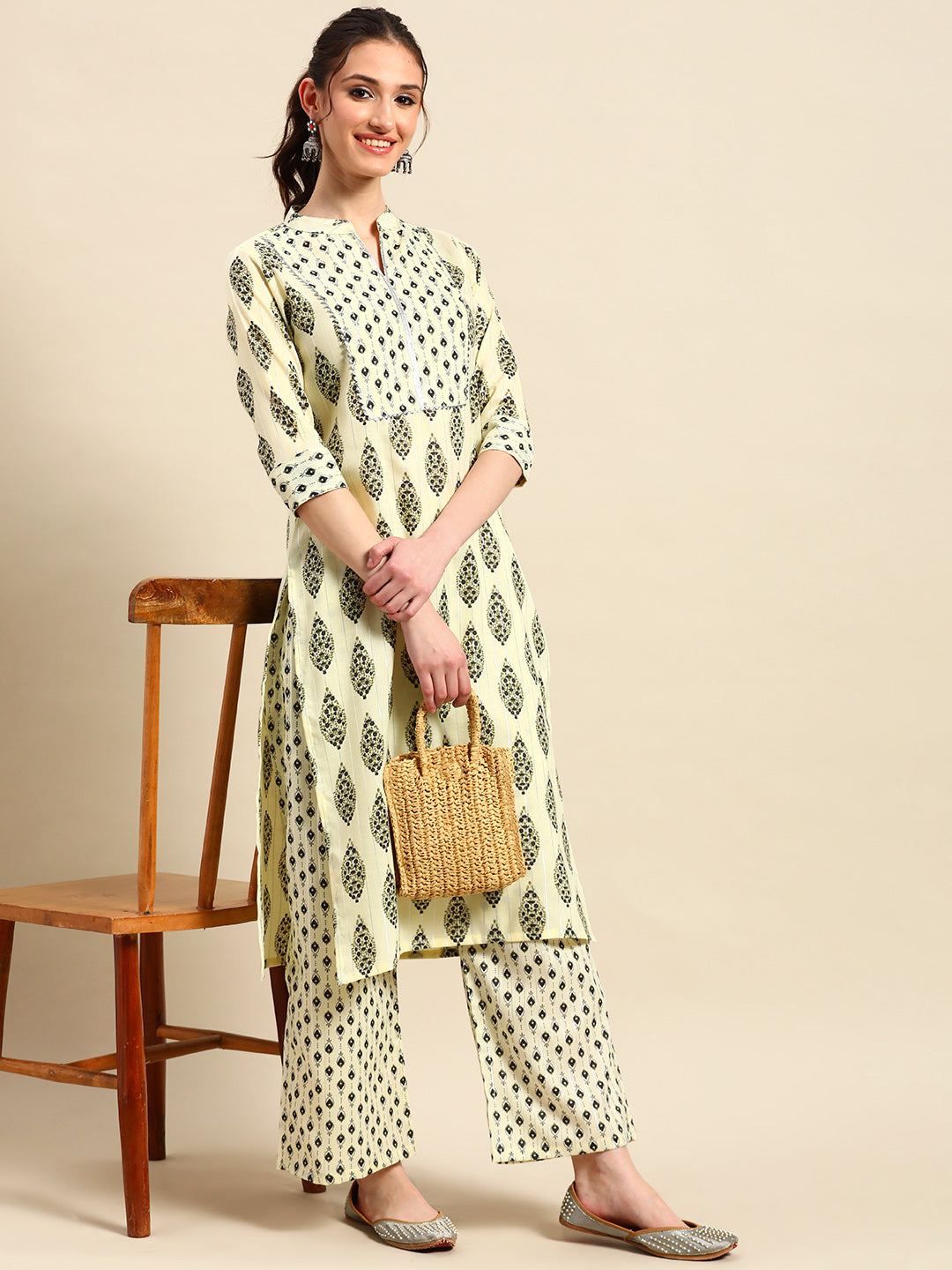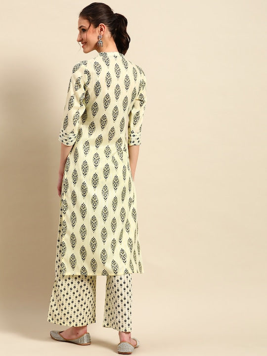 Sangria Ethnic Motifs Printed Gotta Patti Kurta With Palazzos