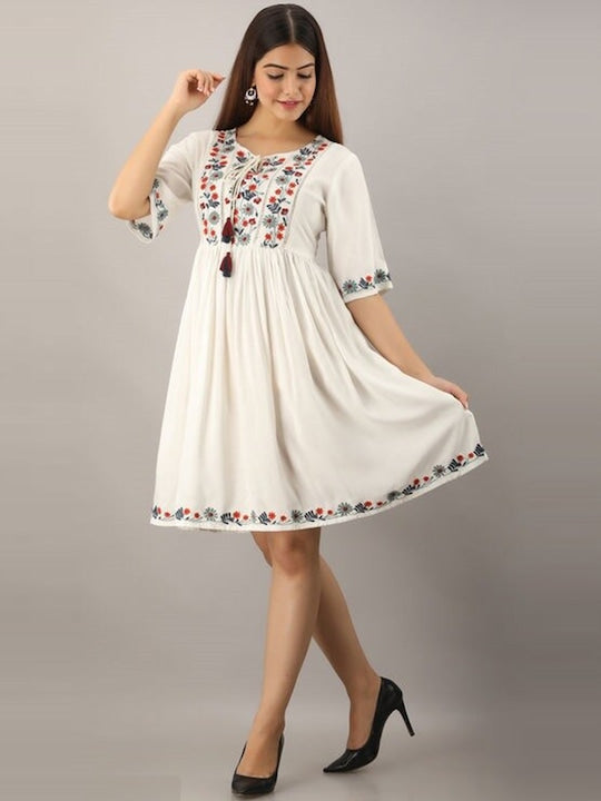 - Sangria White Embroidered Dress